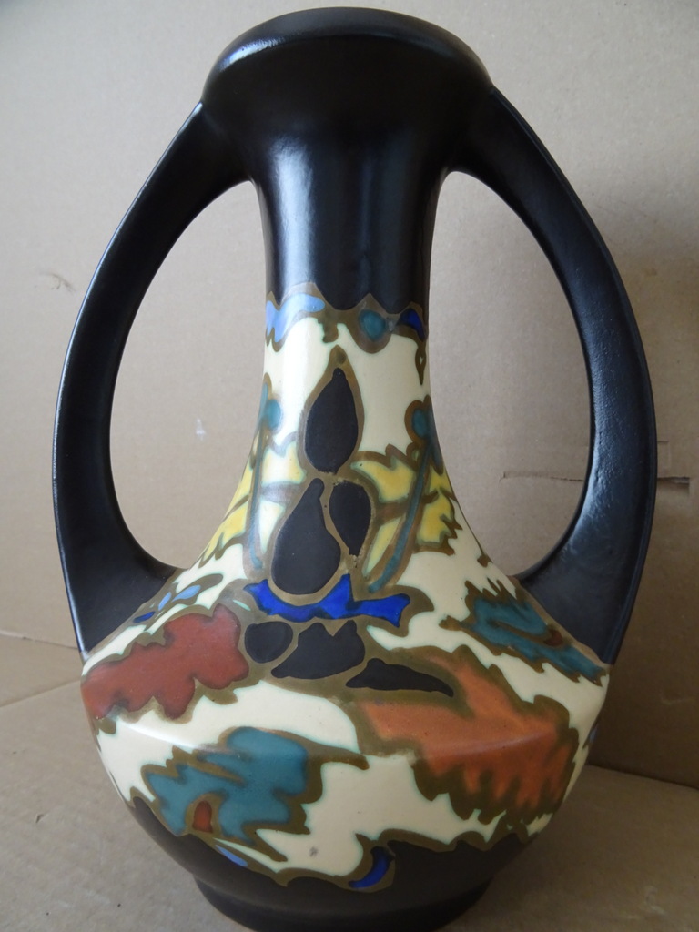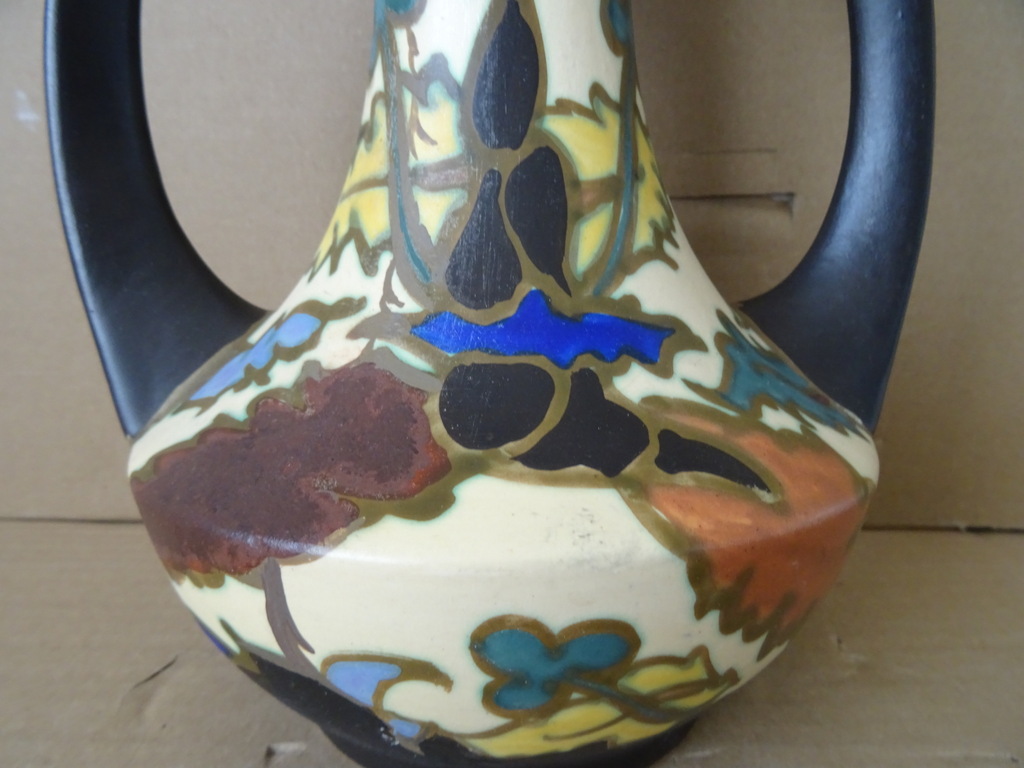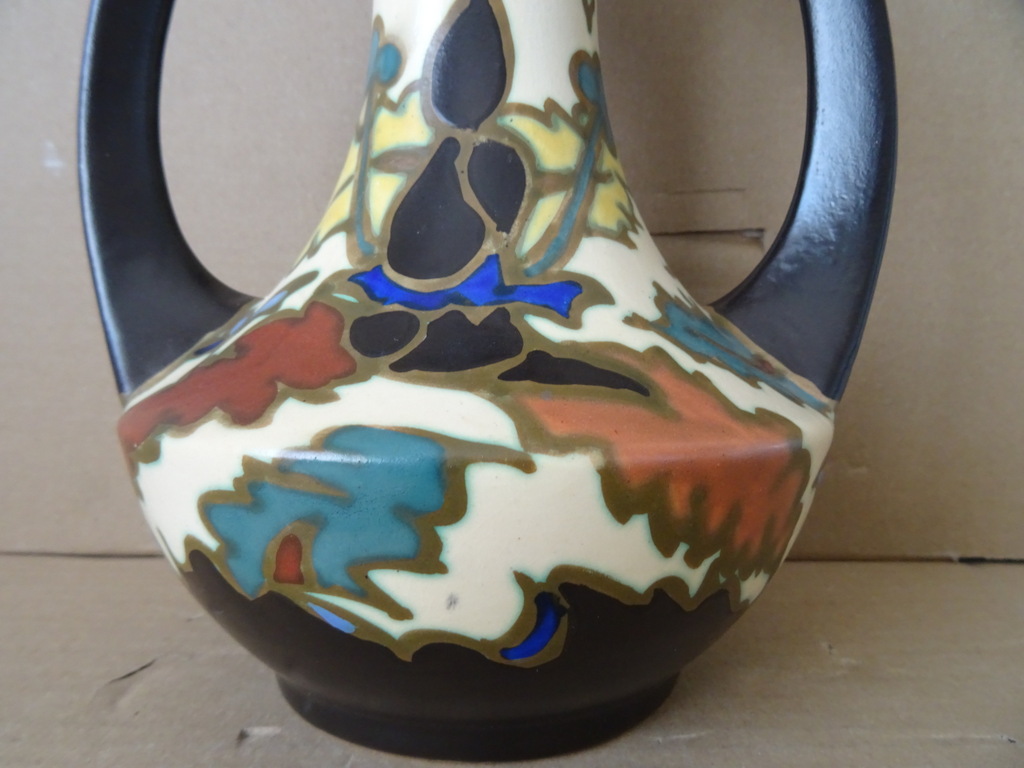 Elegante plateel vaas Bergen Belgique 26cm vervaardigd rond 1960 of later. Een met de hand beschilderde vaas met grote sierlijke handvaten. Ze is nog in goede staat, puntgaaf. Gemerkt; 730 3 ).M. Bergen 156 Fabriqué en Belgique. Verrijk uw interieur met deze wel heel erg fraaie vaas!