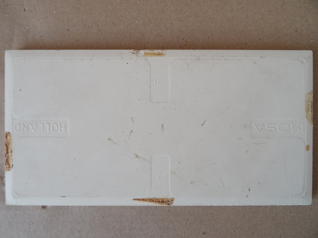 Vintage tegel Mosa Aan hard lopen heeft men niets, men moet op tijd vertrekken vervaardigd rond 1960 of later. De tegel is schoon en haast puntgaaf. Slechts een lichte beschadiging en lichte slijtagesporen aan de achterkant, zie foto’s. Een plakhaakje om zelf eraan te lijmen wordt meegeleverd, zie laatste foto.