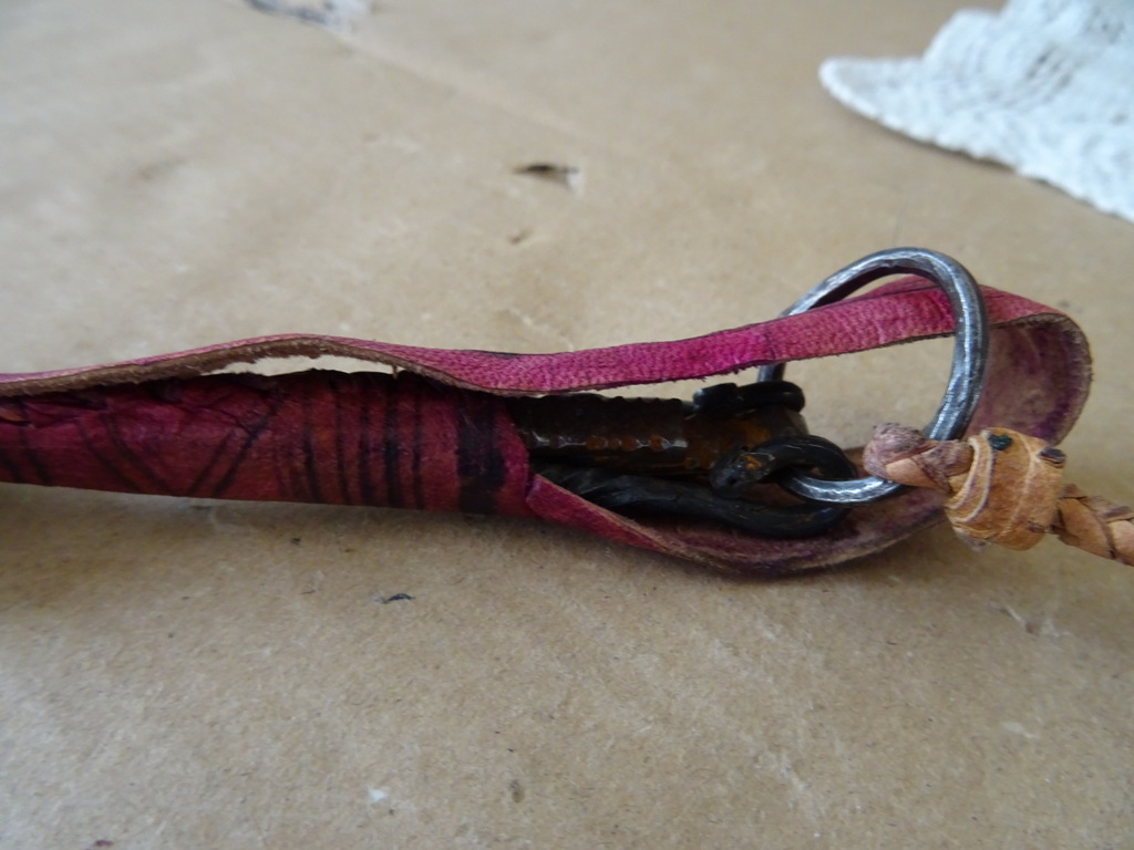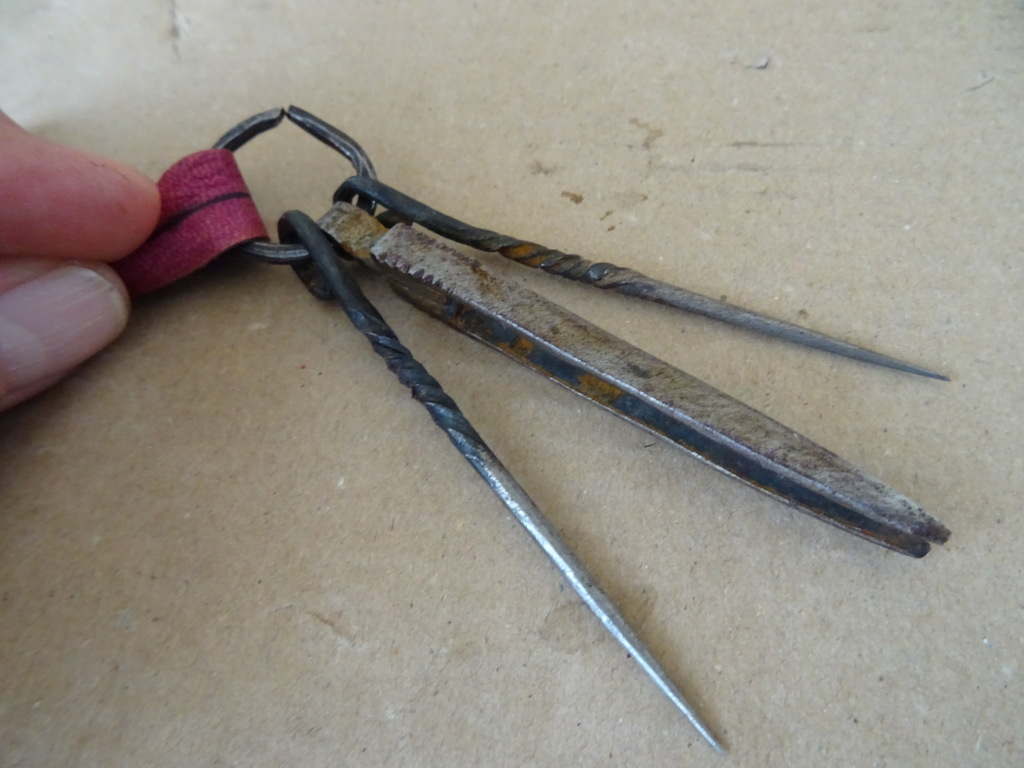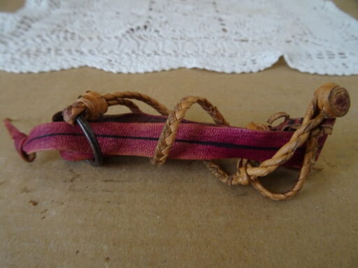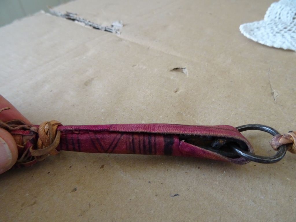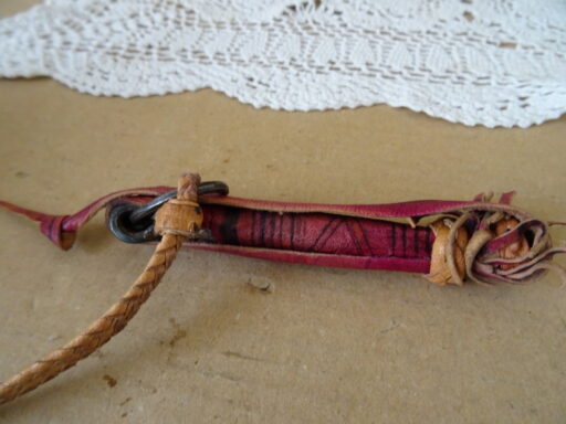 Inheems gereedschap Mali volkskunst volkskunst vervaardigd rond 1960 of later. Een fraai inheems gereedschapssetje op traditionele wijze vervaardigd. Het bevat een pincet en twee pinnen, alle drie van metaal. Het mapje is gemaakt van leer en gekleurd met natuurlijke pigmenten. Waar het voor diende is niet bekend. Het stuk is afkomstig uit een oude familiecollectie. Het is in een schitterende gebruikte staat, zie foto’s. Heel apart, u vindt het alleen bij ons. Afmetingen zoals getoond op laatste foto circa 11 bij 2 bij 2 cm.