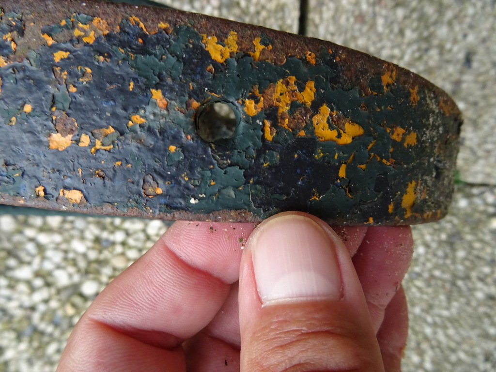 Antiek smeedijzeren boerenwerktuig tuindecoratie afkomstig van een boerderij vervaardigd in de negentiende of twintigste eeuw. Breedte circa 50 cm, circa lengte 177 cm, hoogte circa 97,5 cm. Dit werktuig is vroeger met de hand gebruikt door een boer. Mogelijk diende het om smalle geulen te maken waar vervolgens in gezaaid werd. Het wiel draait nog steeds dus het werktuig is zelfs nog te gebruiken. Verrijk uw tuin of uw interieur met dit wel heel erg fraaie object uit vervlogen tijden! Verzending met de post is niet mogelijk. Het stuk dient afgehaald te worden. Bezorging is eventueel wel mogelijk, na overleg en bijbetaling.