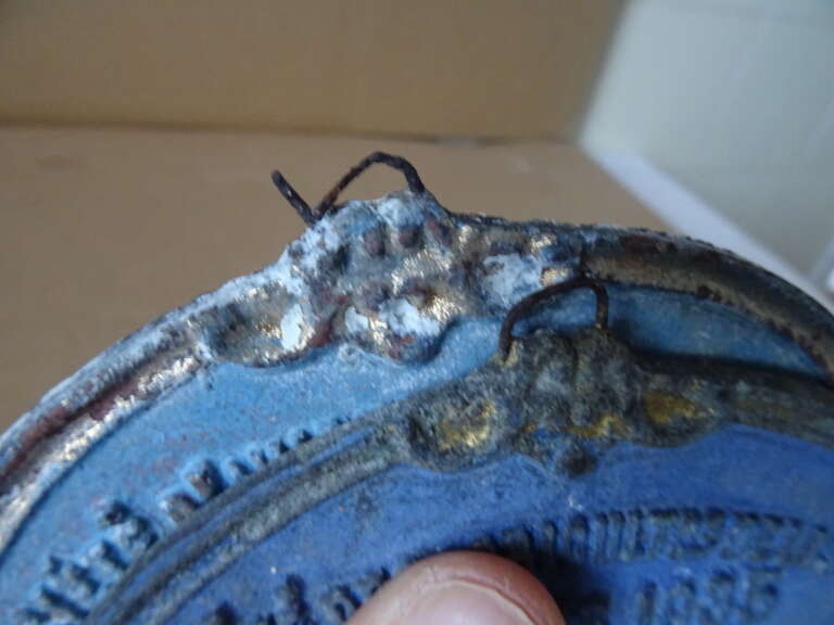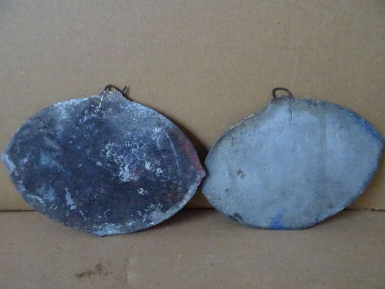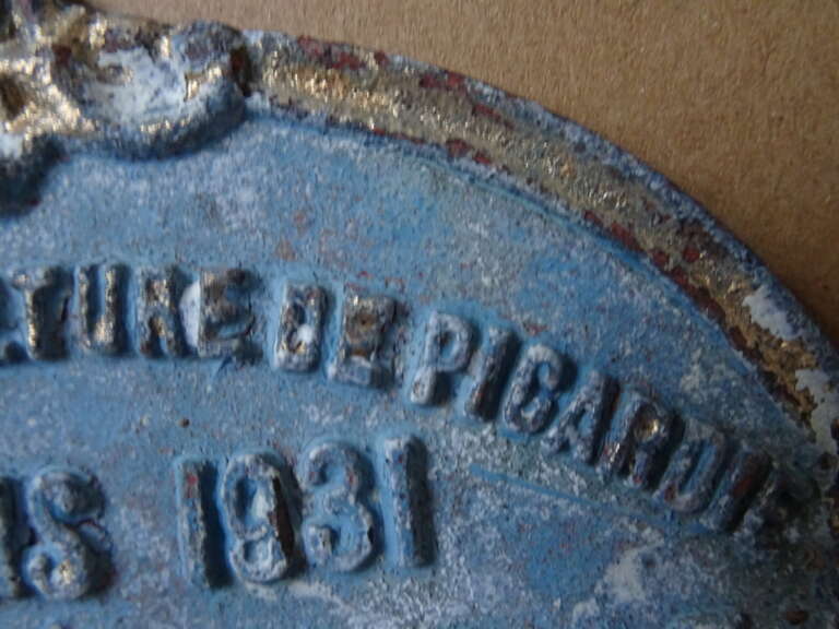 Antieke Franse plaquettes 1e en 2e prijs pluimvee en duiven oftewel antieke Franse plaquettes Société d’aviculture 1e prijs en Société d’agricultures de la Somme 2e prijs. Plaquette 1) Société d’aviculture de Picardie Amiens 1931 Montauban Femelle 1er price. (Société d’aviculture staat voor Pluimvee Vereniging.) Plaquette 2) Société d’agriculture de la Somme Amiens 1935 Pigeons Frises Milanais 2e prix. Beide plaquettes zijn circa 13 bij 9,5 cm en 0,5 cm dik. Ze zijn gegoten uit een onbekende metaalsoort. Aan de randen is nog goed te zien dat deze ooit helemaal verguld waren.