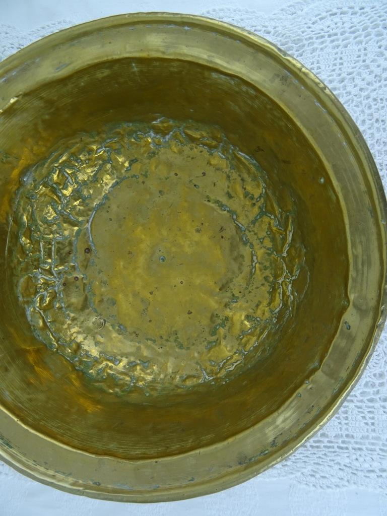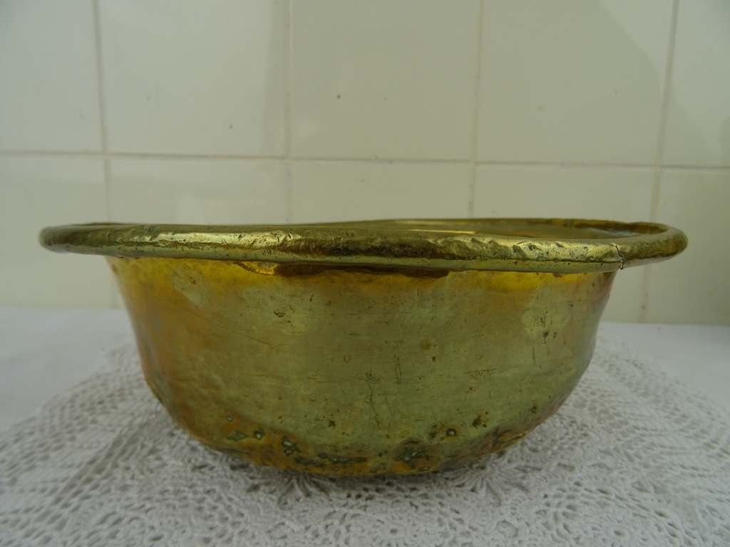 Antieke kom met koperbeslag