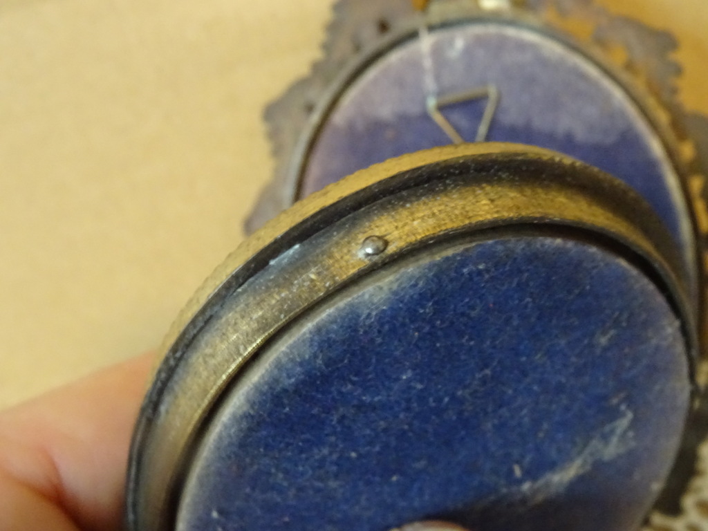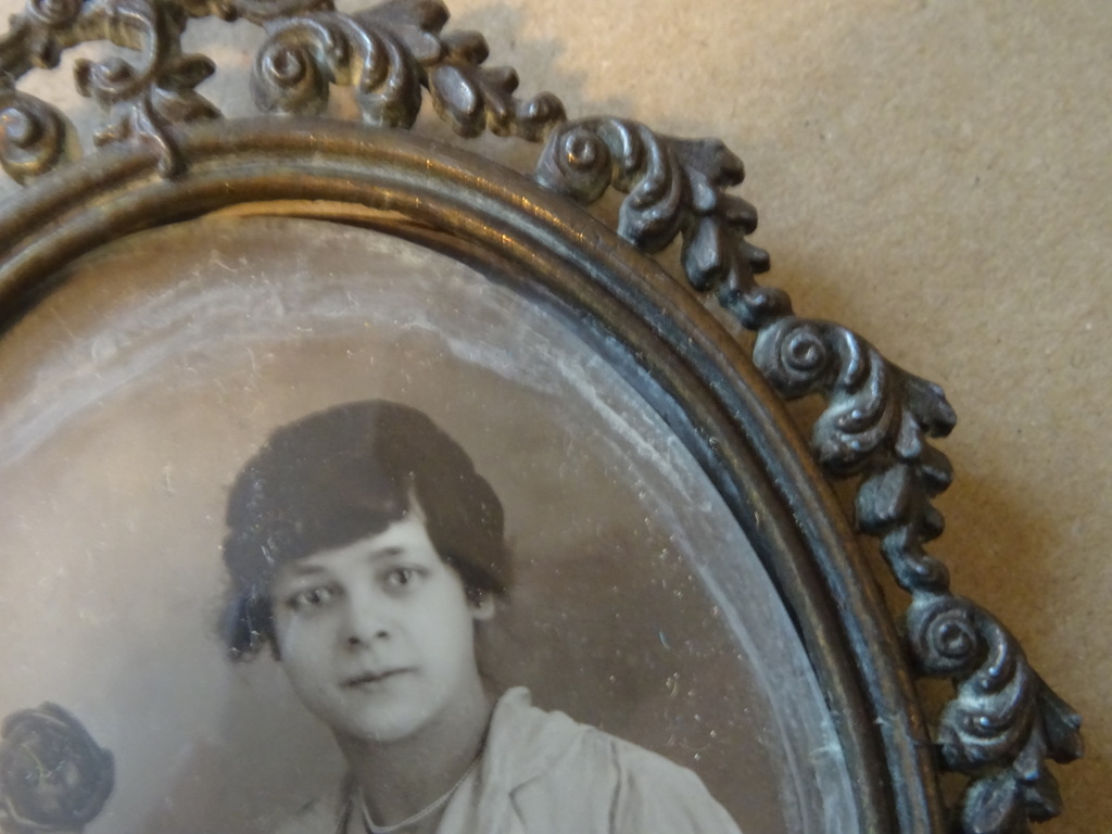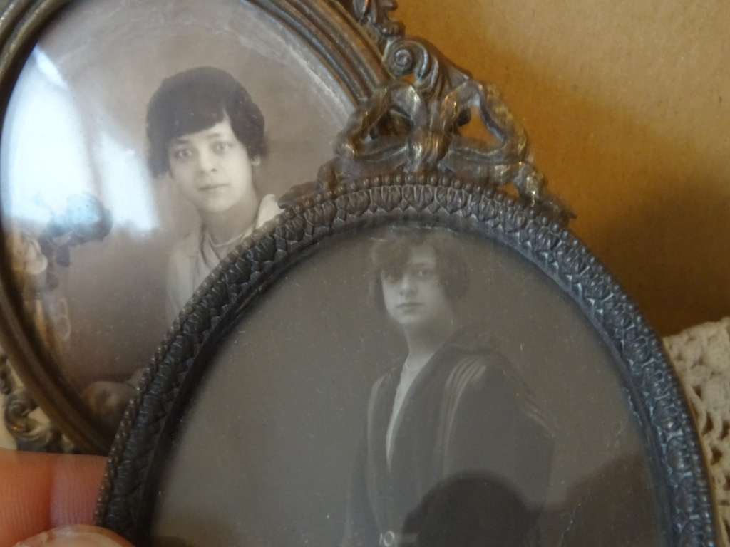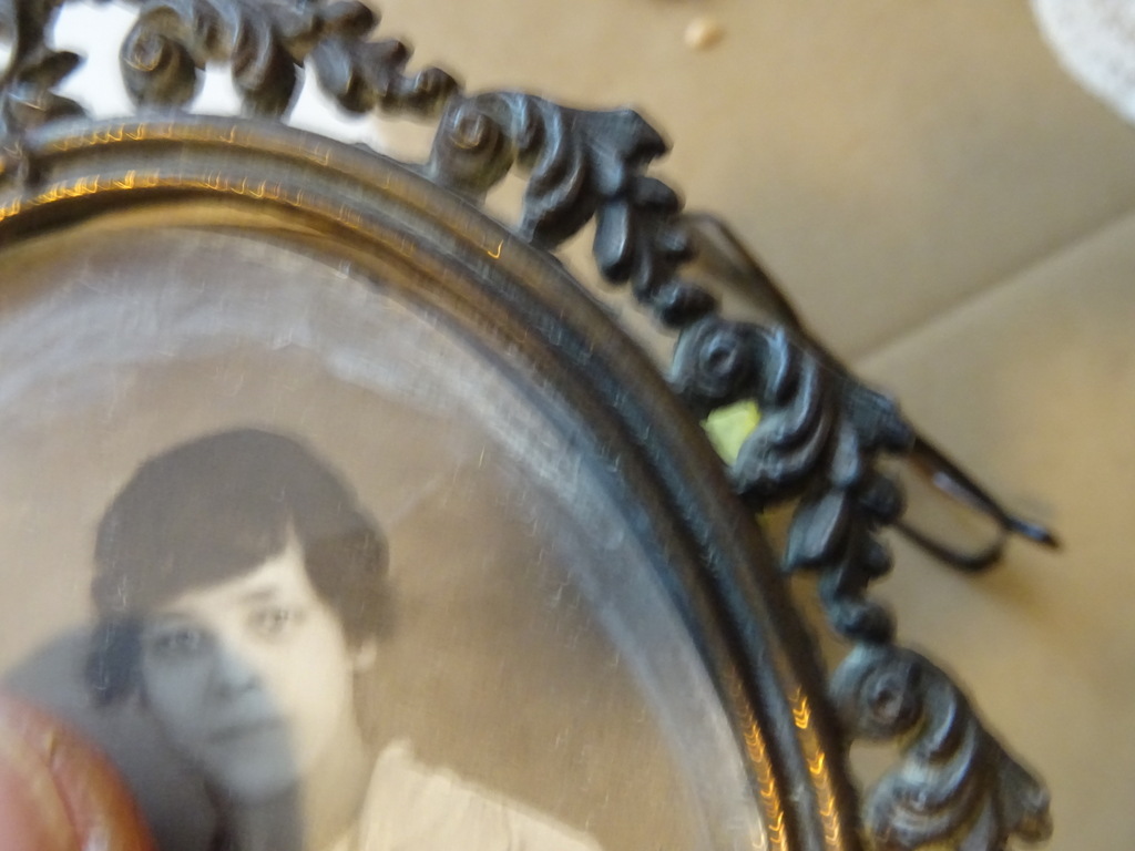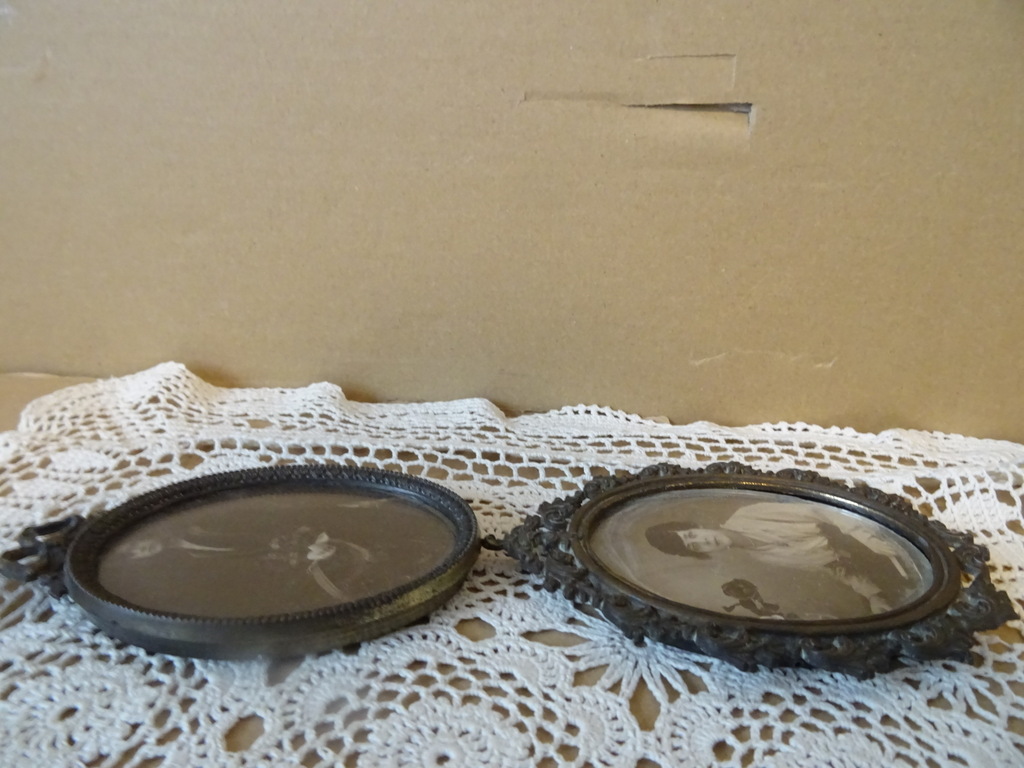 Antieke fotolijstjes 11cm en 13 cm vervaardigd rond 1900 of iets later. De foto’s zijn te verwijderen door de 2 spijkertjes te verwijderen in beide lijstjes. In een schitterende gebruikte staat. Het glaasje van het grootste lijstje is wat los gaan liggen, zie foto’s. Kleinste lijstje circa 7,5 bij 11,5 bij 1,2 cm. Grootste circa 9,5 bij 13,2 bij 1cm. Waarschijnlijk koper.