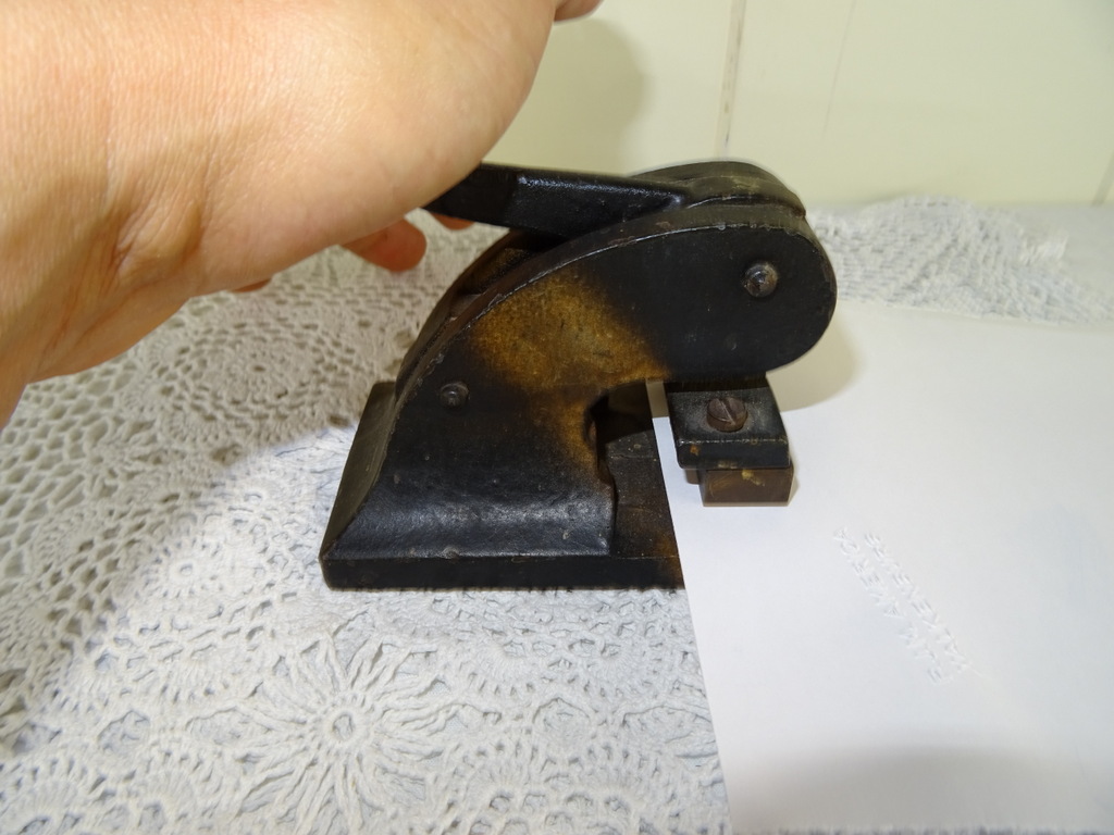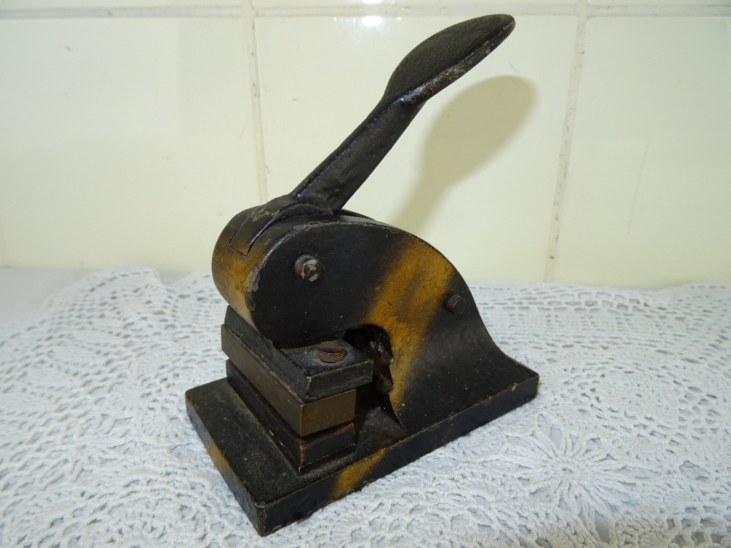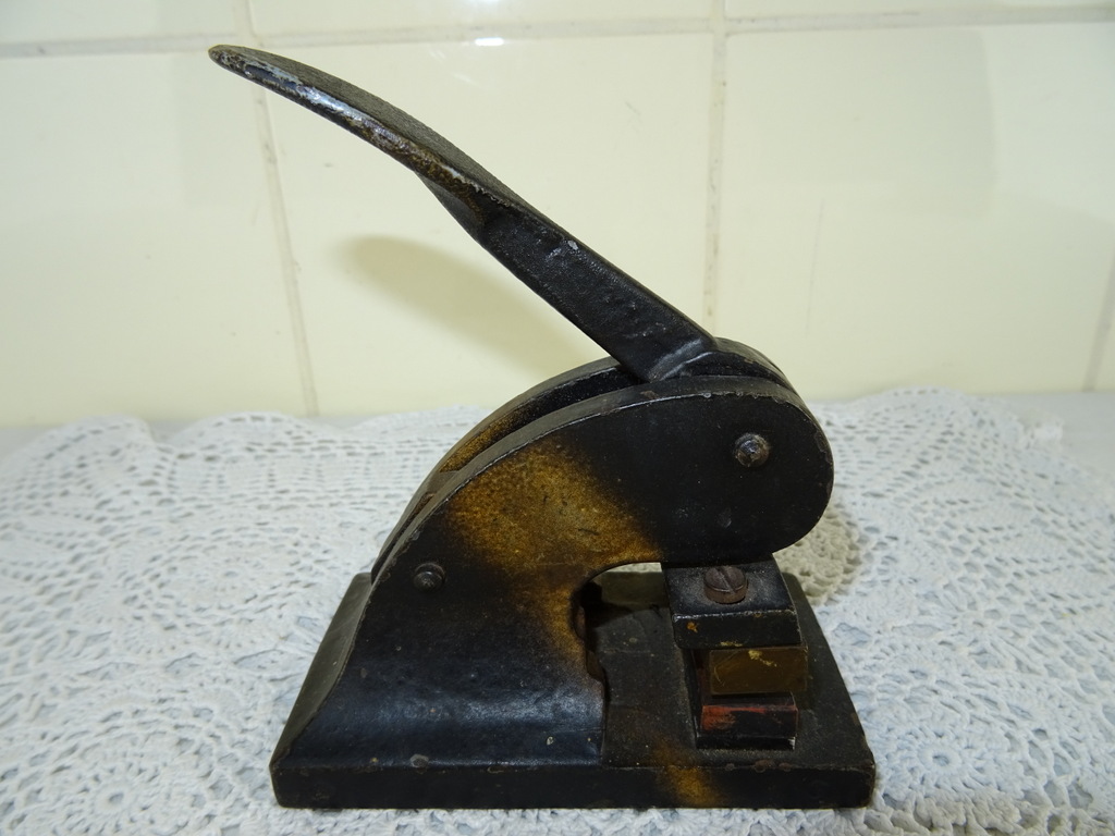Antieke stempel Valkenburg vervaardigd in de negentiende of twintigste eeuw. De schitterende robuuste metalen stempel is een prachtig object en werkt nog perfect. Het object is nog in vrij goede staat. Hij drukt de tekst P.J.M. Valkenburg af, zie foto’s. Iemand die handig is zal zijn eigen naam erin kunnen zetten.