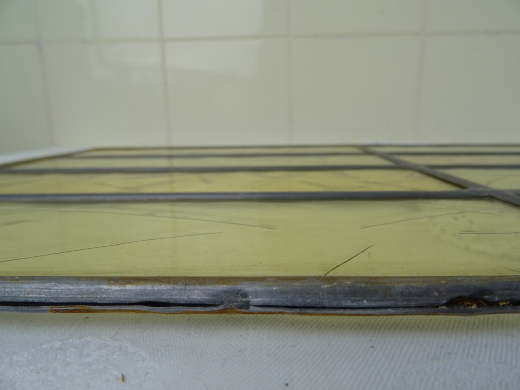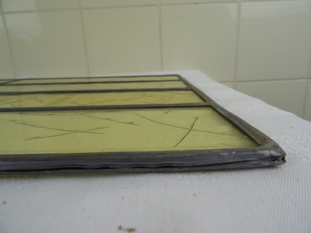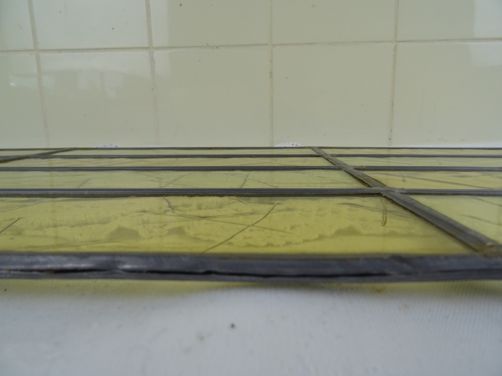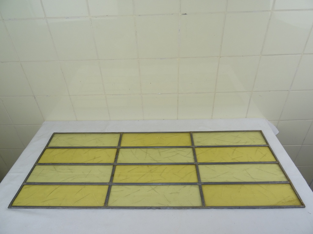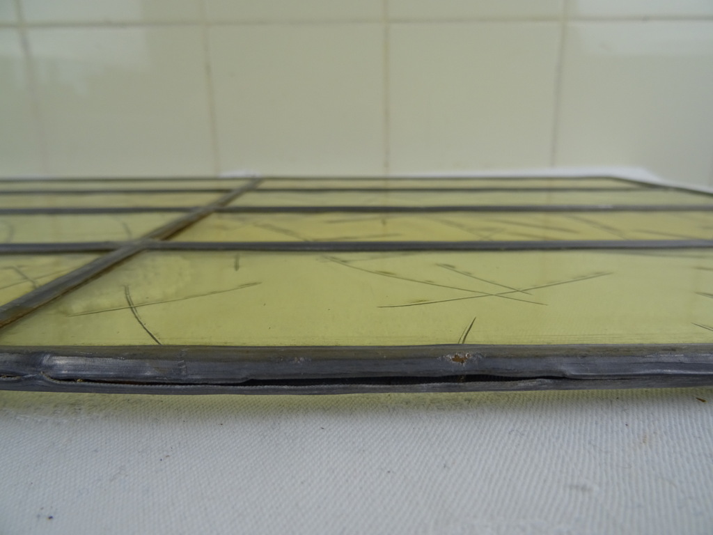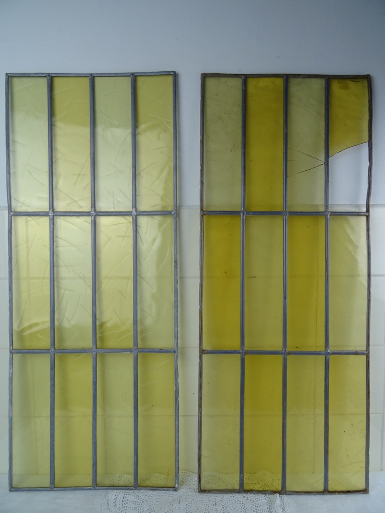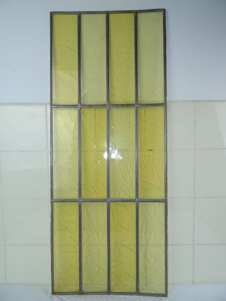 Prachtig glas in lood paneel vervaardigd in de eerste helft van de vorige eeuw. De afmetingen van het imponerende paneel zijn 35.5 bij 87.2 cm en het is circa 3 mm dik. Het is in zeer goede gebruikte staat, al het glas is heel. Het tweede paneel krijgt u er gratis bij. Hiervan ontbreekt een venster en is er een kapot, zie foto’s. Door het vele glas en het zachte lood zijn de panelen niet te versturen.