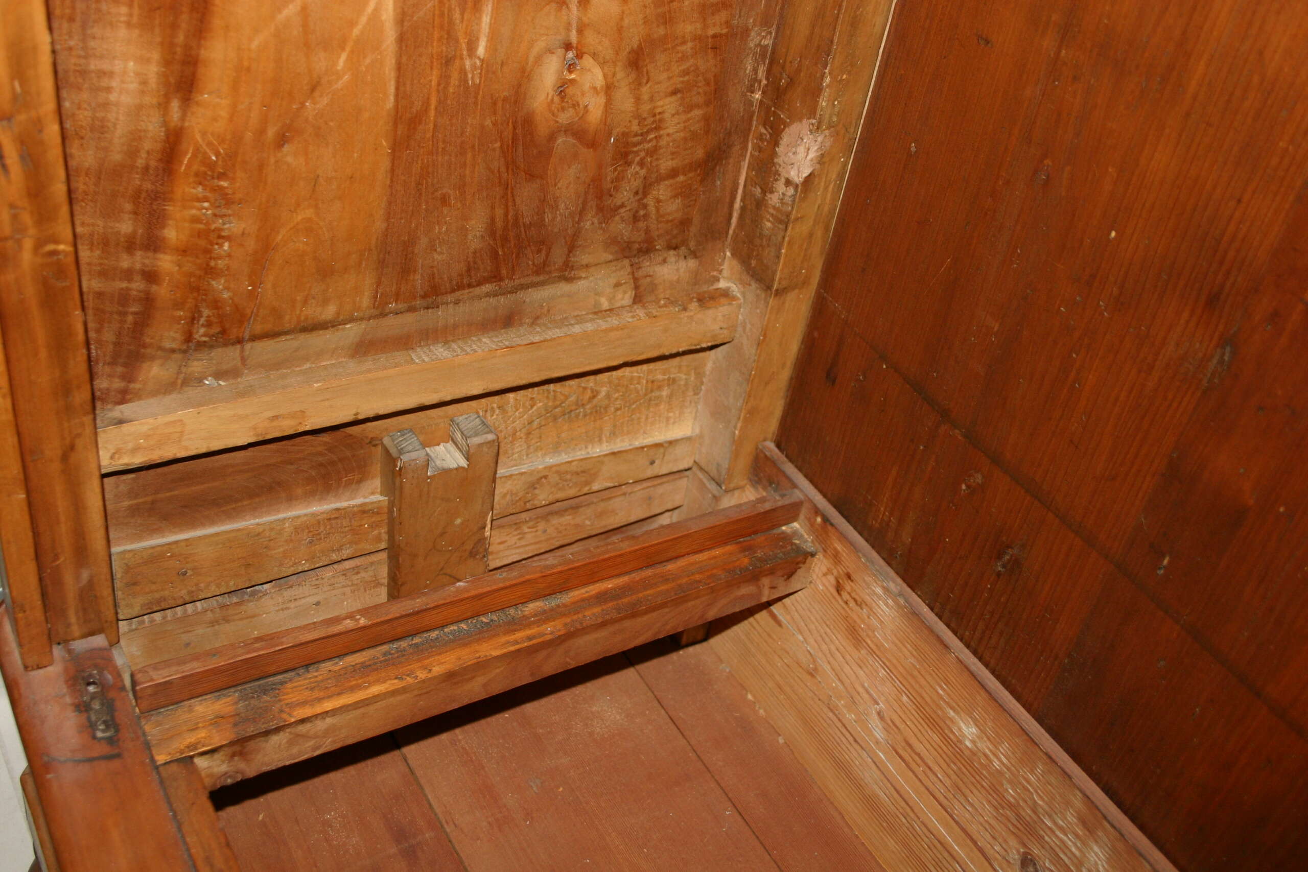 Antieke kersenhouten Biedermeier meidenkast linnenkast vervaardigd rond 1900 of iets eerder. Een fraaie Biedermeier kast in nog vrij goede staat, zeer solide. Dit soort kast noemde men ook wel een meidenkast aangezien dienstmeiden het linnen en dergelijke erin opborgen. De deur van de kast is afsluitbaar, de sleutel is erbij. De kast al gedemonteerd. Ze is helemaal vervaardigd met ouderwetse houtverbindingen, er komt geen schroef aan te pas. Verrijk uw interieur met deze fraaie antieke meidenkast! Ze kan afgehaald worden in Bunde. Bezorging in de gehele Benelux is mogelijk na overleg en bijbetaling. Afmetingen; Breedte (gemeten aan bovenkant) 152 cm. Diepte 50 cm, diepte bovenkant 57 cm. Hoogte circa 205 á 210 cm. De legplanken in de kast hebben een diepte van 40 cm.