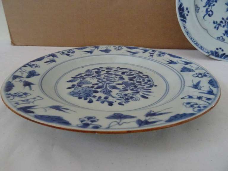 18e-eeuwse antieke Chinese borden vervaardigd rond 1750. Beide borden zijn op prachtige wijze verrijkt met florale decoratie en zijn in goede gebruikte staat. Bord 1 heeft een haarscheur door het hele bord, aan beide zijdes. Bord 2 heeft slechts een klein haarscheurtje, ook aan beide zijdes te zien, zie foto’s. Beide borden hebben verder slechts enkele minuscule lakbeschadigingen aan de randen. Verrijk uw interieur of uw collectie met deze wel heel erg fraaie borden van bijna 300 jaar oud. De diktes van de borden zijn circa 3 millimeter. De afmetingen; Bord 1) Circa 23,2 bij 23 bij 3 cm. Bord 2) Circa 23,5 bij 23,5 bij 2,3 cm.