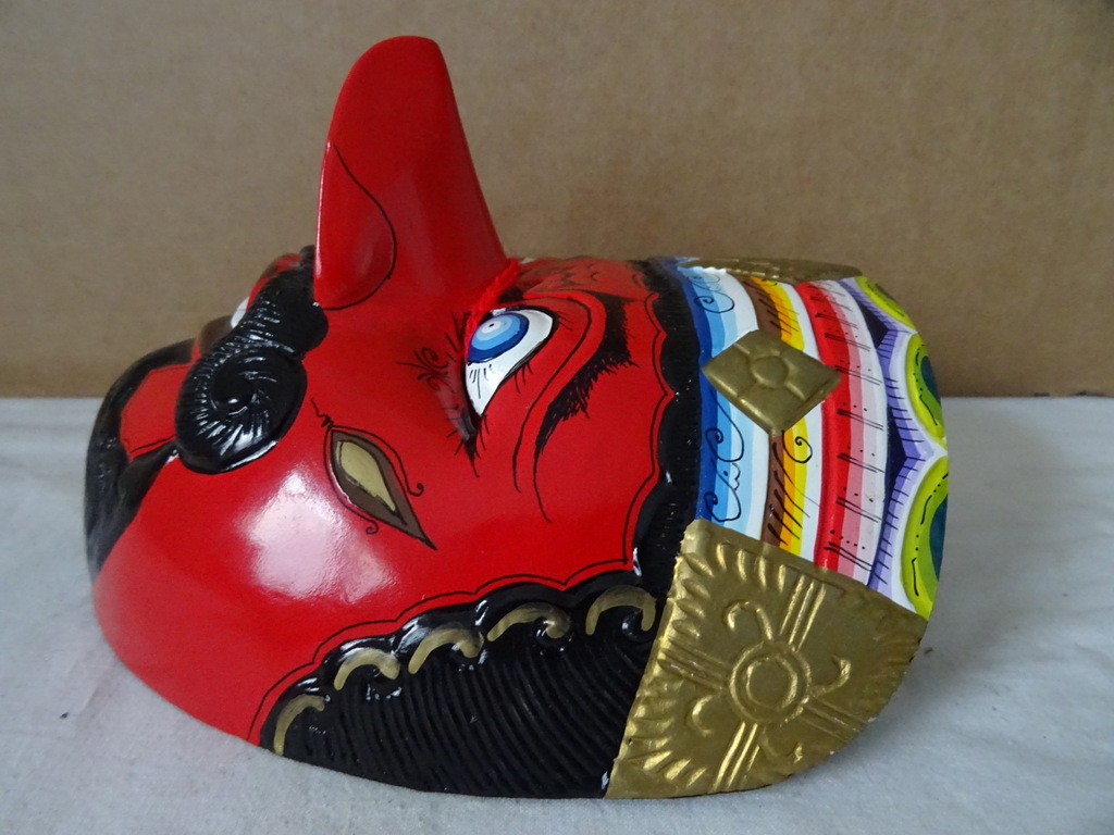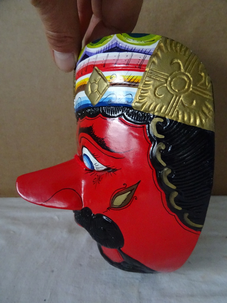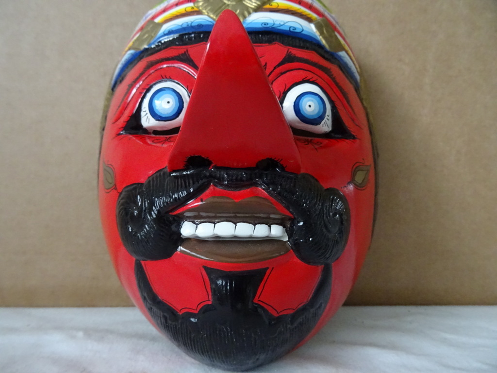Vintage houten masker Indonesië vervaardigd rond 1960 of iets later. Het is met de hand gesneden, het wel heel erg fraaie masker is duidelijk gemaakt door iemand met verstand van zaken. In nog vrij goede staat, haast als nieuw, zie foto’s. is duidelijk gemaakt door iemand met verstand van zaken. In nog vrij goede staat, haast als nieuw, zie foto’s. Afkomstig uit een collectie.