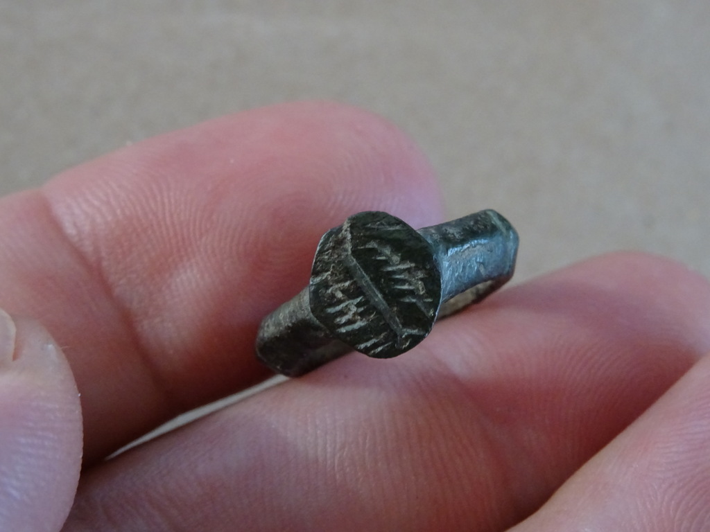 Bodemvondst middeleeuwse bronzen ring voor kind uit de periode 500 tot 1500 na Christus. Dit is een schatting, volgens de vinder die hem opgroef is het een ring uit de middeleeuwen. De ring kan ook ouder zijn. Hij is rijkelijk versierd met een soort florale decoratie. Tips zijn welkom. De fraaie ring is in ieder geval in een schitterende gebruikte staat voor een sieraad van zeker duizend jaar oud. Er is ook nog een ring van de kruisvaarders, deze wordt binnenkort toegevoegd.