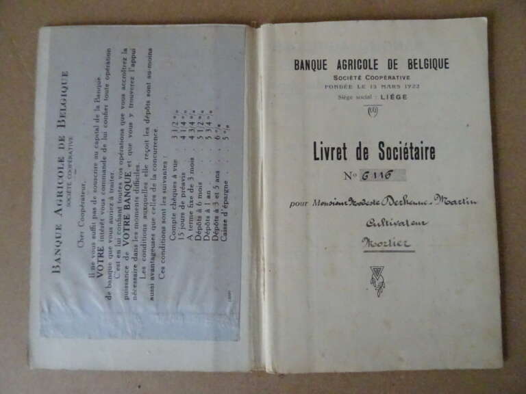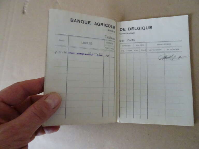 Antiek Livret de sociétaire a la Banque Agricole de Belgique