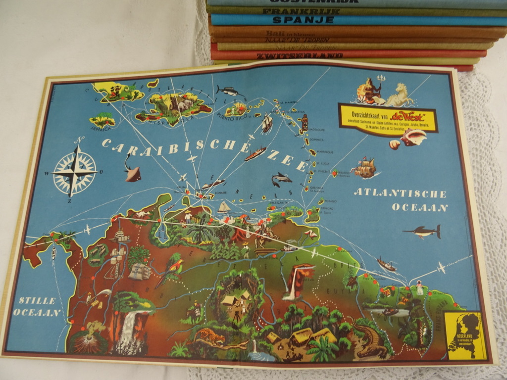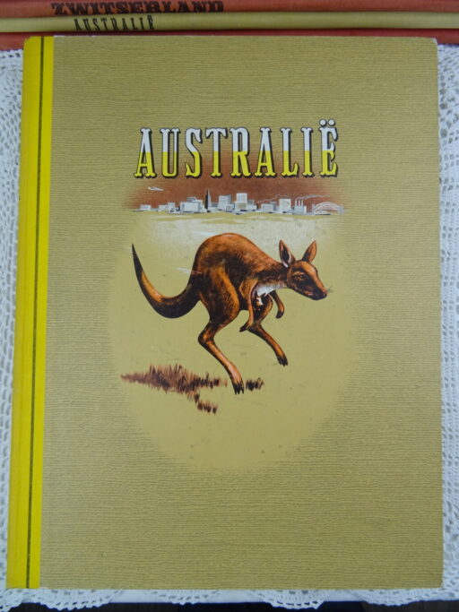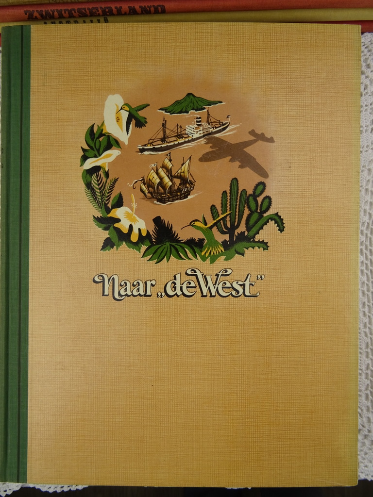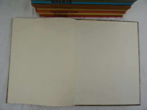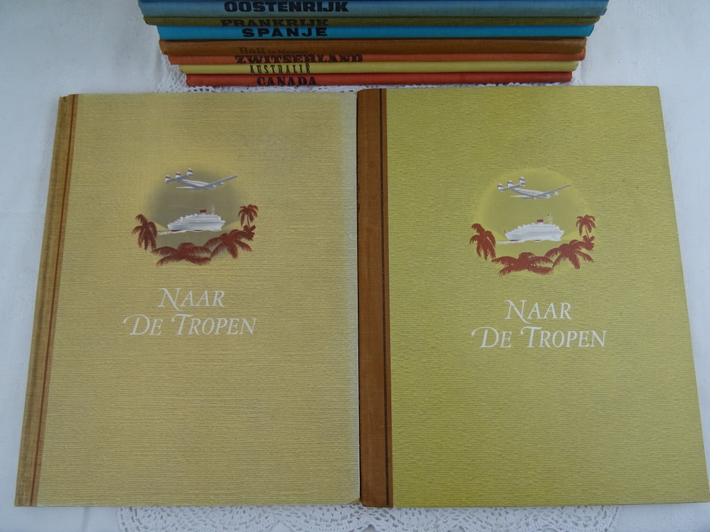 Antieke serie plaatjesboeken Douwe Egberts vervaardigd rond 1950 1960. Elk boek behandelt een land of werelddeel. De fraaie boeken geven een prachtige kijk op hoe men de wereld zag in de jaren vijftig van de vorige eeuw. In enkele boeken zitten nog de aanvraagformulieren voor de plaatjes. De serie is vrijwel compleet. Ik weet niet uit hoeveel delen de serie bestond maar groot Brittanië ontbreekt in ieder geval. Het boek Naar de tropen is dubbel, echter niet identiek, zie foto’s. Het geheel is in goede gebruikte staat, zie foto’s. Van binnen zijn de boeken in vrij goede staat.