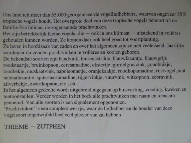 Cees van Berkel Prachtvinken, eerste druk uit 1986. In een goede gebruikte staat, gelezen, van binnen nog redelijk. 104 Pagina’s leesgenot en kijkgenot.