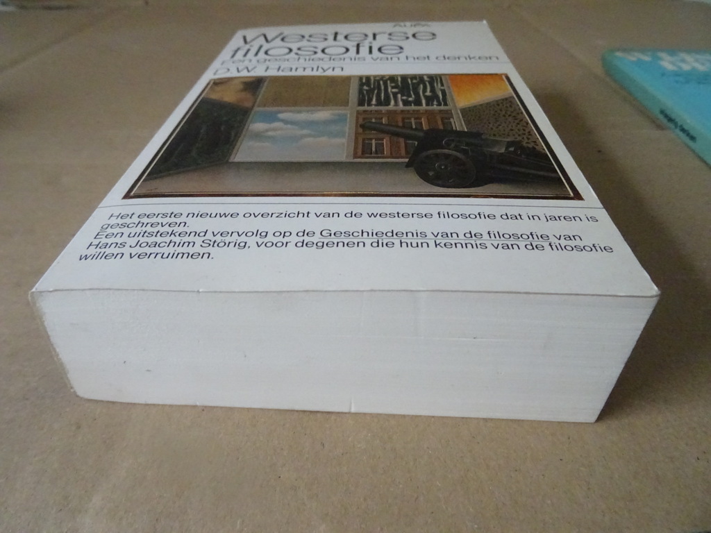 D.W. Hamlyn Westerse filosofie, Een geschiedenis van het denken, eerste Nederlandse druk uit 1988. In een schitterende gebruikte staat, twee paginagrote vouwen, zie foto’s. Van binnen afgezien daarvan nog best mooi, lijkt ongelezen. 429 pagina’s.
