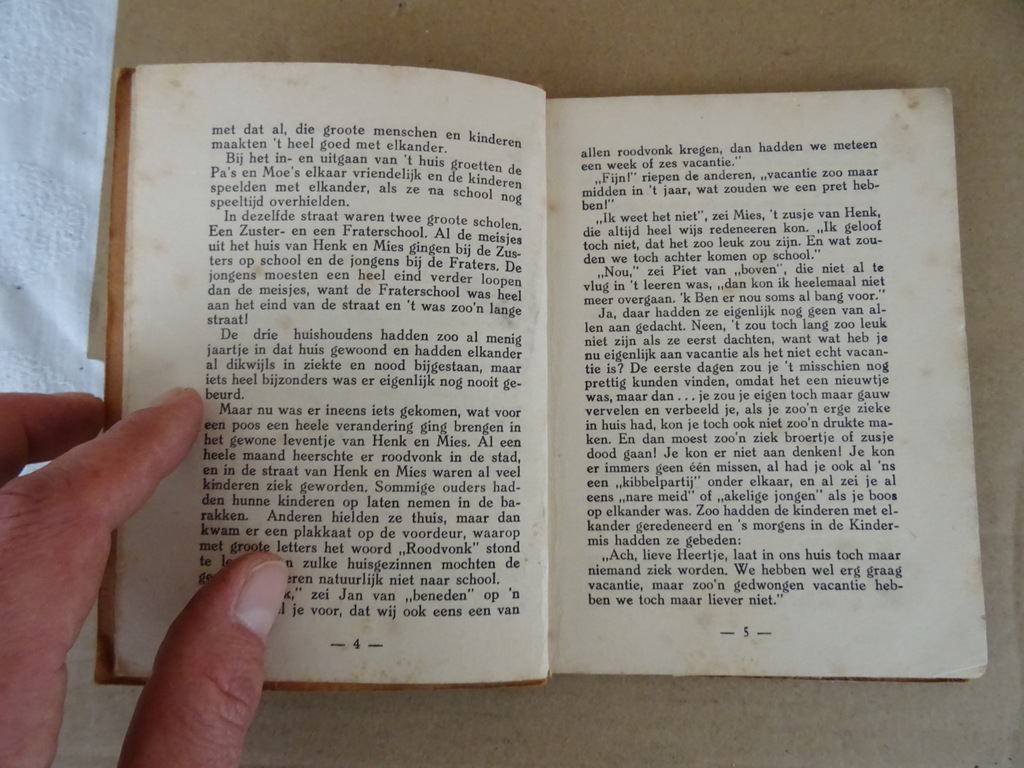 De Kinderen van het Vredespaleis door A.M. van Dongen, mogelijk eerste druk uit circa 1927. Het fraaie kinderboekje heeft 64 pagina’s en is in zeer goede gebruikte staat, mogelijk ongelezen. Heeft wat verkleuringen/ vochtplakjes, voornamelijk voorin, verder van binnen nog vrij goed. Het is een zeer zeldzaam boekje, u vindt het alleen bij ons.