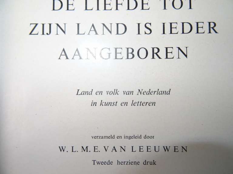 De liefde tot zijn land is ieder aangeboren uit 1955 Land en volk van Nederland in kunst en letteren. Dit prachtige boek bevat veel informatie en fraaie prenten. Het telt 247 bladzijdes en is in goede staat, het eerste blad is beschreven.