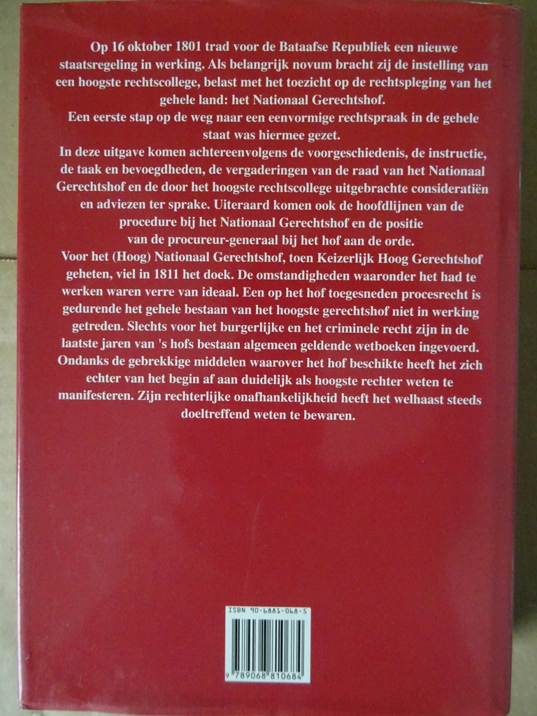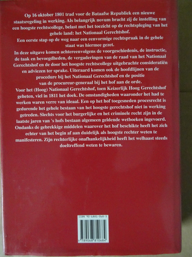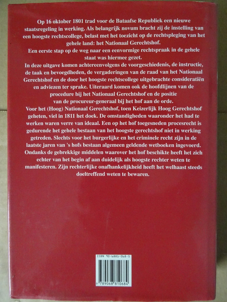 E. C. G. Bauwens Het Nationaal Gerechtshof 1802-1811, Stellingen behorende bij het Proefschrift van E.C.G. Bauwens, eerste druk uit 1997. In een schitterende gebruikte staat, zie foto’s. Van binnen nog mooi, lijkt ongelezen of haast ongelezen. 476 pagina’s.