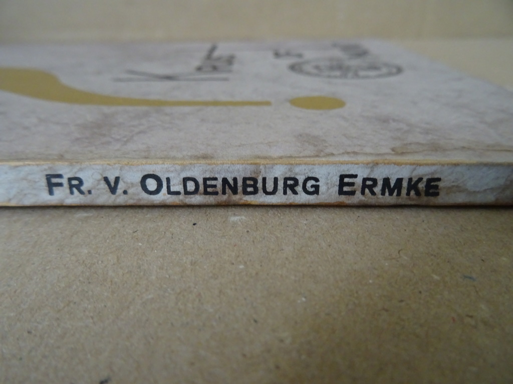 Frans v. Oldenburg Ermke Kruis of munt?, Een bundel verzen van Frans v. Oldenburg Ermke met een inleidende ballade van Anton van Duinkerken, eerste druk zonder jaartal, circa 1934. In redelijke gebruikte staat. Er zijn wat vlekjes door het hele boek, achterin en voorin is dit wat erger, zie foto’s. Het boek is wel nog goed leesbaar. Afgezien van de vlekjes van binnen nog mooi, lijkt ongelezen. 54 pagina’s met gedichten.