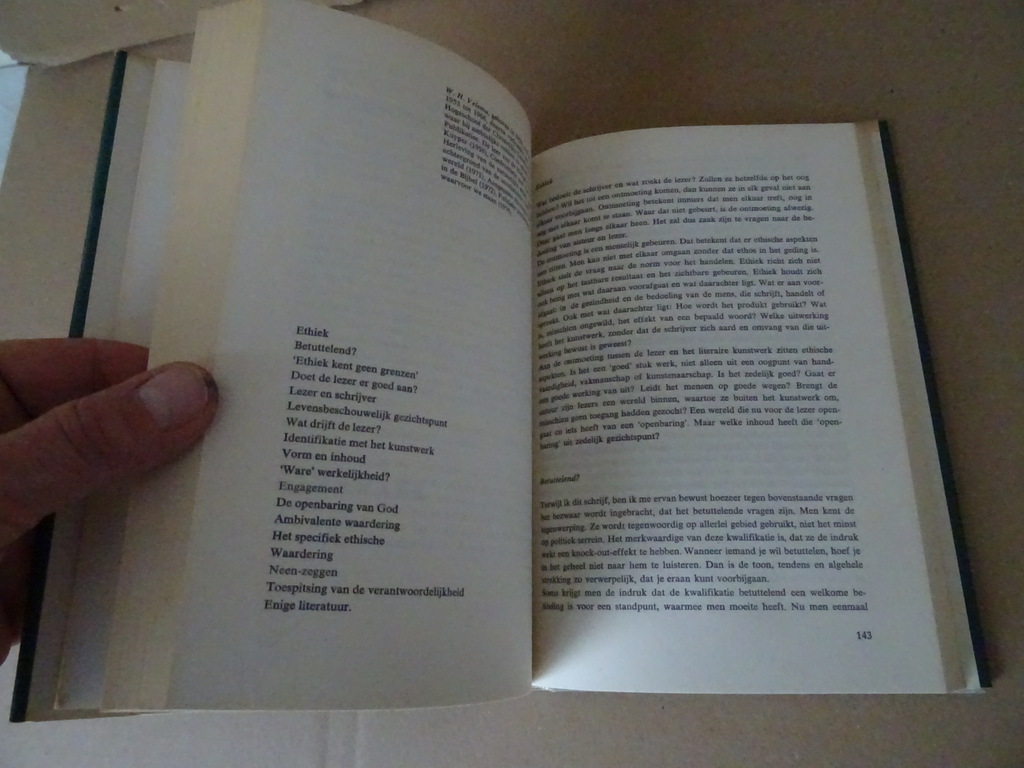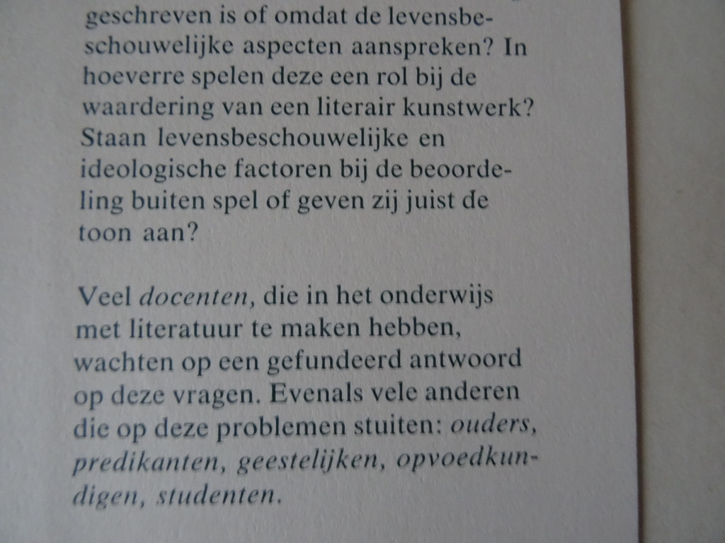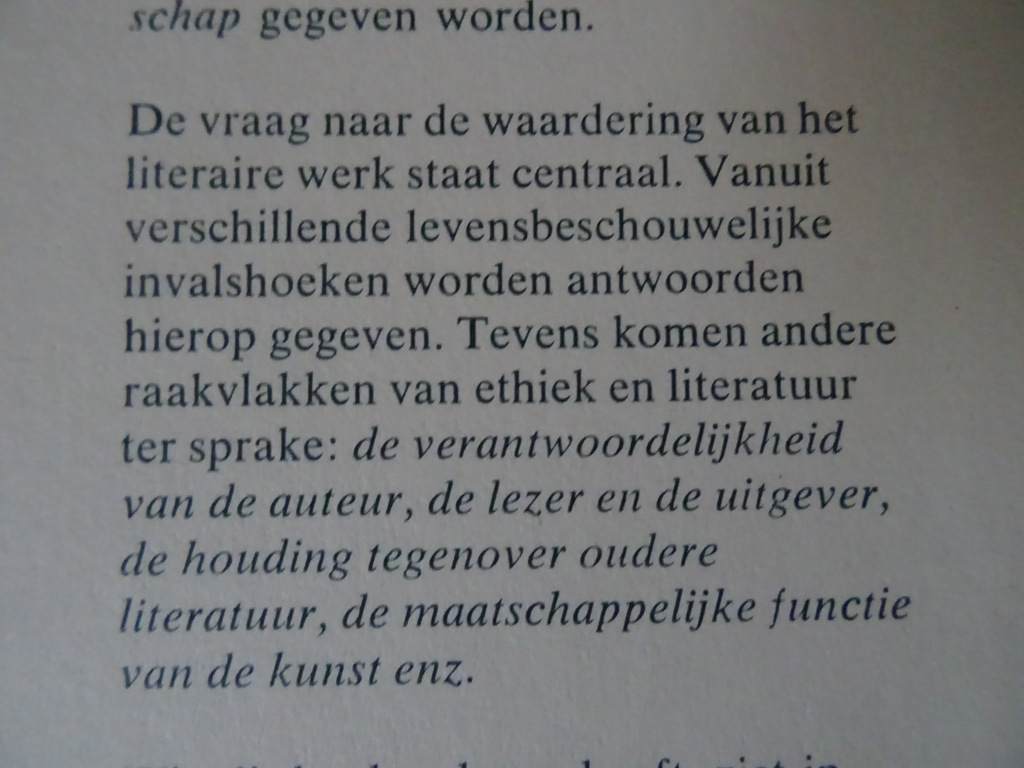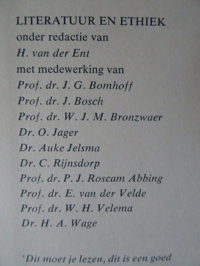 H. van der Ent Literatuur en ethiek onder redactie van H. van der Ent, eerste druk uit 1977. In een prachtige gebruikte staat, van binnen nog vrij mooi. Ik vond één gevouwen hoekje, zie foto’s. Afgezien daarvan lijkt het ongelezen. 248 pagina’s.