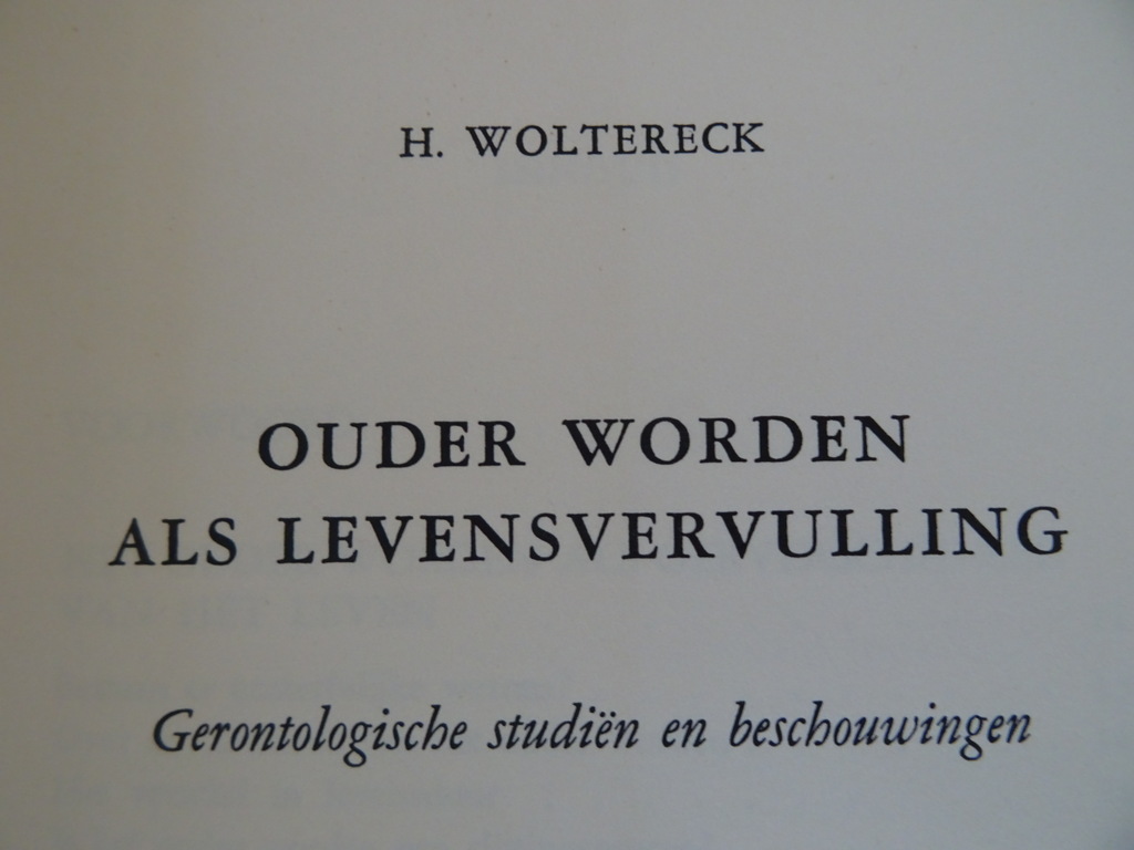 H. Woltereck Ouder worden als levensvervulling, Gerontologische studiën en beschouwingen, eerste Nederlandse druk uit 1957. In een prachtige gebruikte staat, zie foto’s. Van binnen nog mooi, lijkt ongelezen. 210 pagina’s.