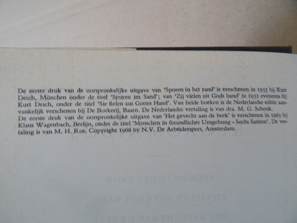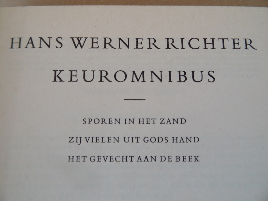 Hans Werner Richter Keuromnibus, Sporen in het zand, Zij vielen uit Gods hand, Het gevecht aan de beek, eerste Nederlandse druk uit 1966. In schitterende gebruikte staat, zie foto’s. Van binnen nog mooi, lijkt ongelezen. 480 pagina’s.