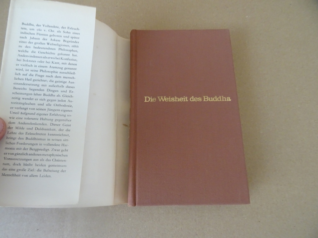 Helmuth von Glasenapp Die weisheit des Buddha, eerste Duitstalige druk zonder jaartal, circa 1970. In een schitterende gebruikte staat, zie foto’s. Van binnen nog mooi, lijkt ongelezen. 231 pagina’s.