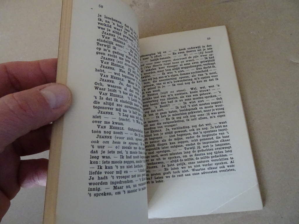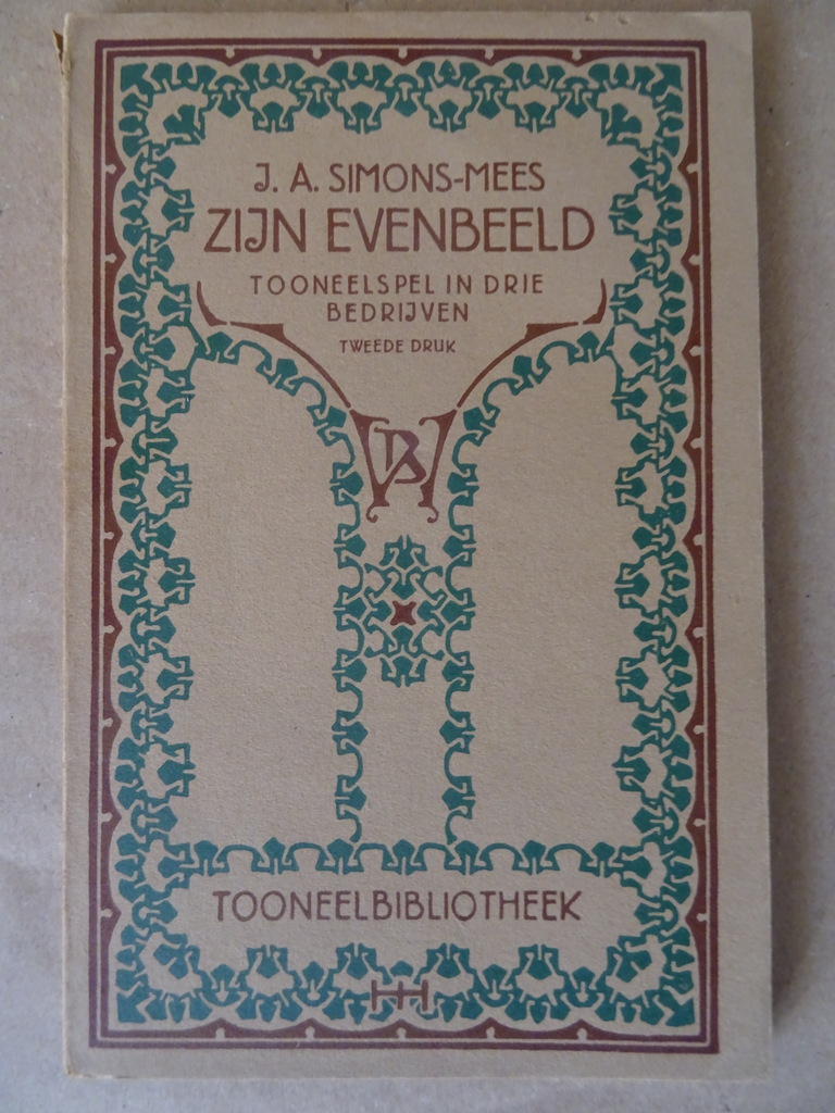 J. A. Simons-Mees Zijn evenbeeld Toneelspel in drie bedrijven, tweede druk zonder jaartal. 1905 of iets later. In goede gebruikte staat, slechts wat lichte slijtage aan de buitenkant, zie foto’s. Gelezen maar van binnen nog best mooi, enkele vouwtjes. 89 pagina’s. Zeldzaam boekje.