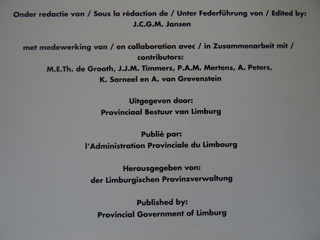 J.C.G.M. Jansen Limburg 150 Kunst en Cultuur in Limburg, eerste druk in vier talen uit 1989. Het boek is in een prachtige gebruikte staat, zie foto’s. Van binnen nog mooi, lijkt ongelezen. 234 pagina’s. Met een groot aantal schitterende kleurenfoto’s. De teksten zijn in het Nederlands, Engels, Duits en Frans.