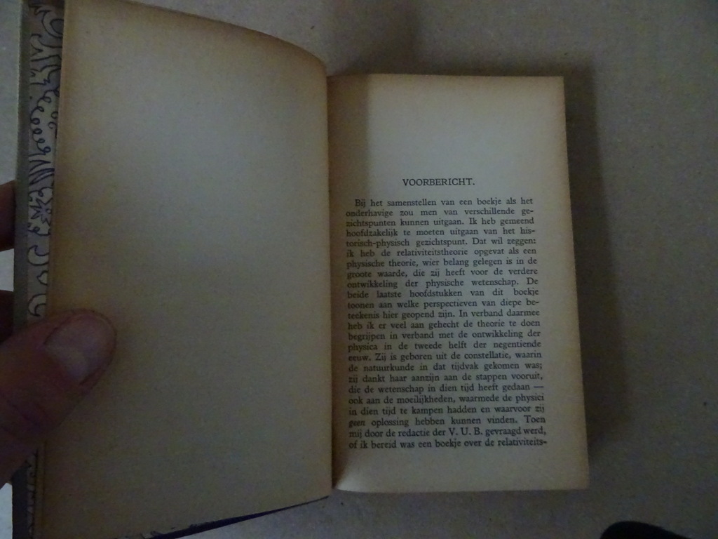 F.J. D. van der Waals Jr. De relativiteits-theorie, eerste druk uit 1923. In een prachtige gebruikte staat, zie foto’s. Van binnen nog mooi, lijkt ongelezen. 231 pagina’s. Johannes Diderik van der Waals Jr. ( 1873 – 1971) was een Nederlandse hoogleraar in de theoretische natuurkunde.