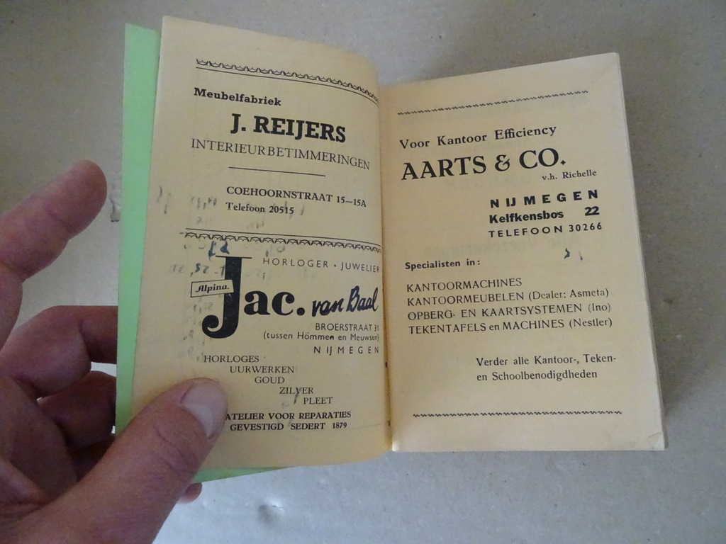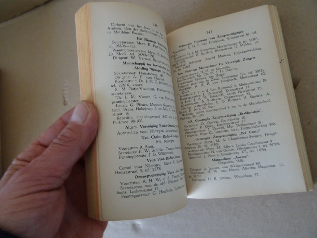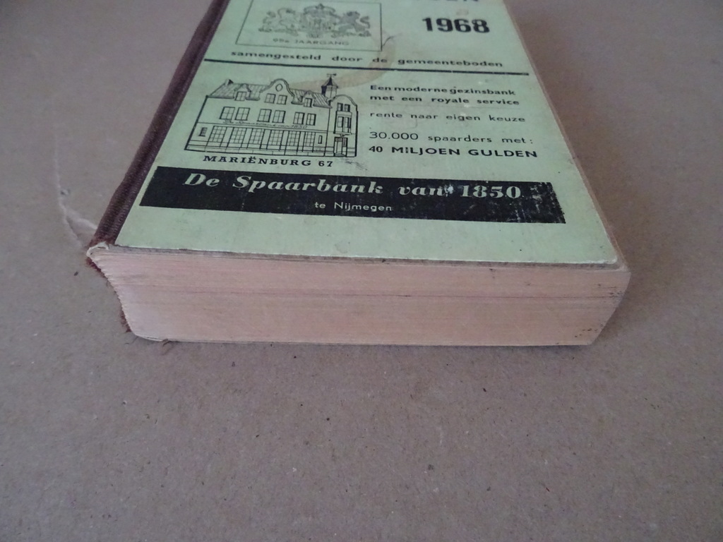 Jaarboekje voor Nijmegen 1968 samengesteld door de gemeenteboden, eerste druk uit 1968. In een prachtige gebruikte staat, zie foto’s. Gelezen, voorste blad beschreven, enkele vouwtjes, afgezien daarvan nog best mooi. 652 pagina’s.