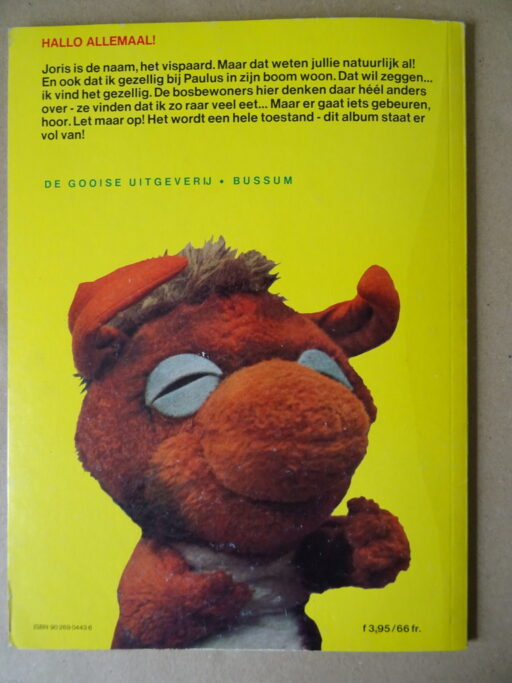 Jean Dulieu / Leen Valkenier Paulus de boskabouter Een actiegroep in het bos De valkuil Joris wordt onthongerd!, eerste druk uit 1975. In prachtige gebruikte staat, zie foto’s. Gelezen, van binnen nog best mooi afgezien van wat lichte leessporen. Geen paginanummering, circa 40 bladzijdes.