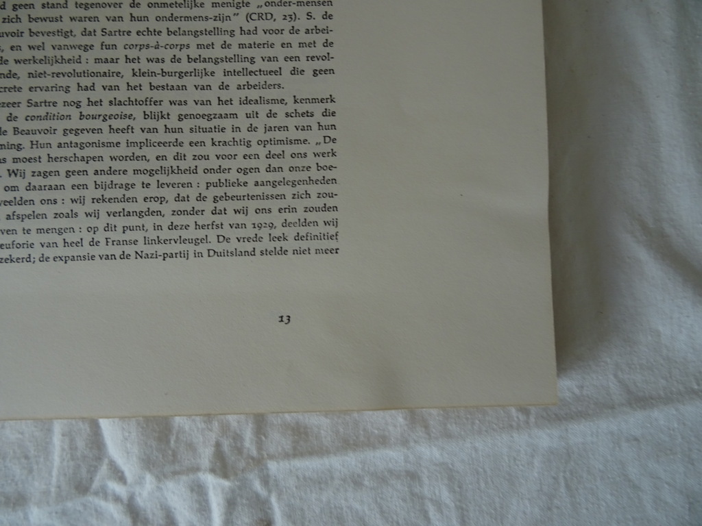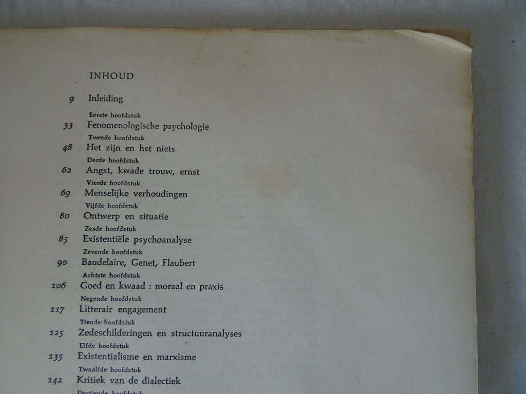 Jean-Paul Sartre Een inleiding tot zijn denken door DRS. C.E.M. Struyker Boudier, eerste druk uit 1967. In goede gebruikte staat, mogelijk gelezen maar nog vrij mooi. De papieren kaft en de eerste en laatste circa 4 pagina’s hebben slechts wat te lijden gehad, zie foto’s. Jean-Paul Sartre (1905-1980) was een bekende Franse filosoof en schrijver van romans en toneelstukken. Hij wordt beschouwd als de grondlegger van het Franse existentialisme.