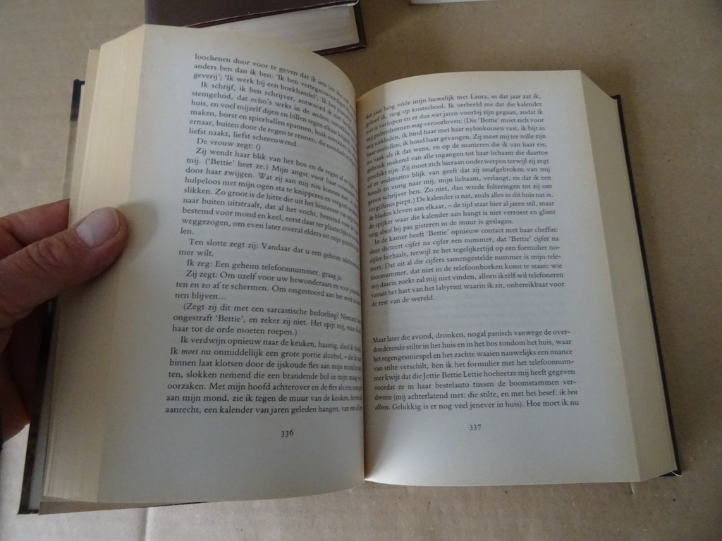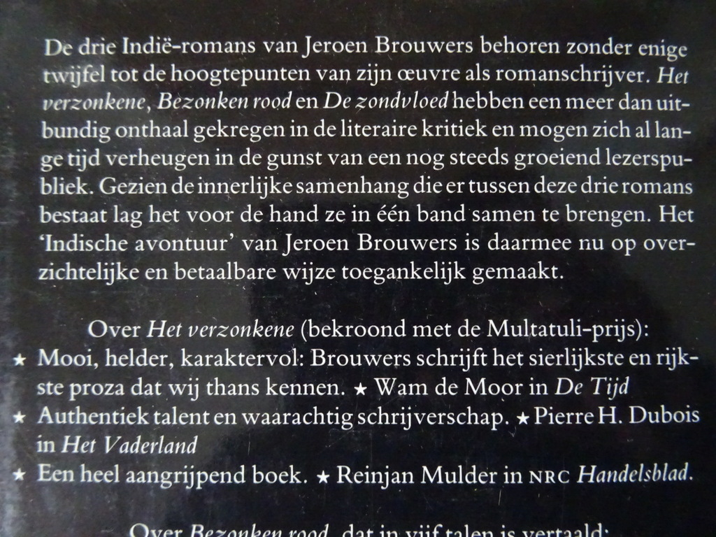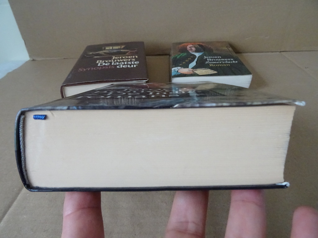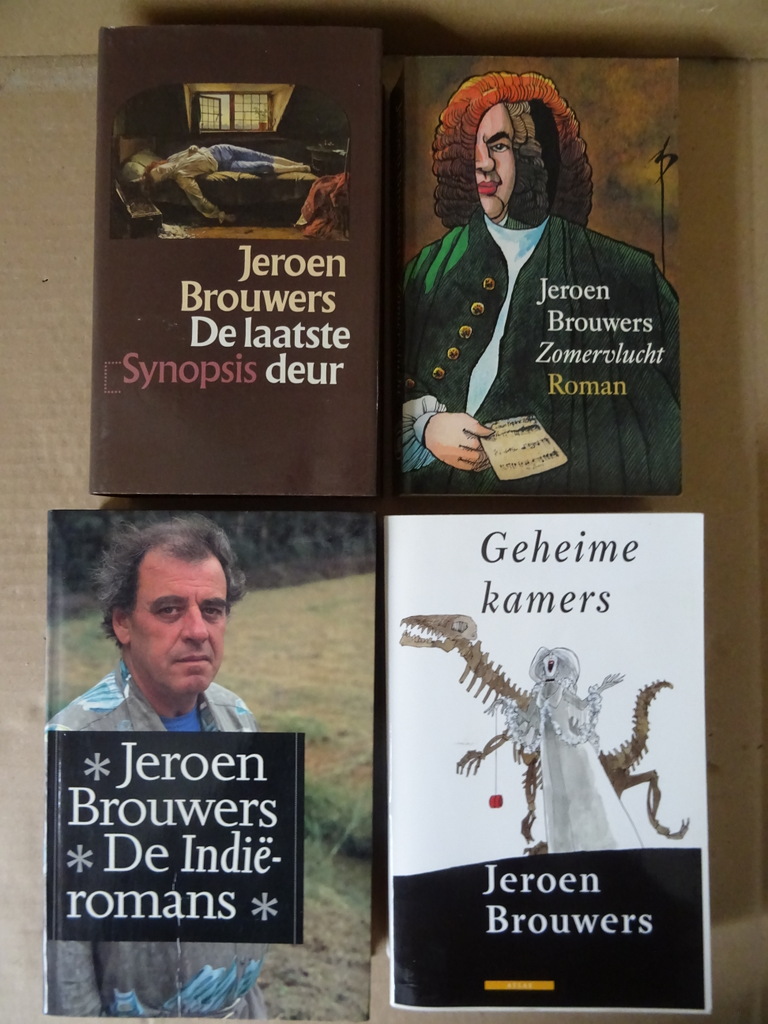 Jeroen Brouwers collectie 4 boeken De laatste deur, Essays over zelfmoord in de Nederlandse letteren, vierde druk uit 1984. Lijkt ongelezen. 533 pagina’s. Zomervlucht, Roman, tweede druk uit 1990. 312 pagina’s. Gelezen maar nog best mooi. De Indië-romans, eerste druk uit 1992. 974 pagina’s. Lijkt ongelezen. Geheime kamers, zestiende druk uit 2002. 488 pagina’s. Lijkt ongelezen. Aan de buitenkant van de boeken (zijkanten van de pagina’s) slechts een vlekje hier en daar, zie foto’s. Indien gewenst los te koop voor 9 euro per stuk. Jeroen Brouwers (1940-2022) was een bekende Nederlandse schrijver, essayist en journalist.