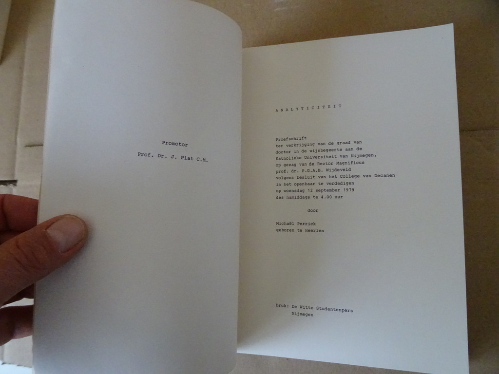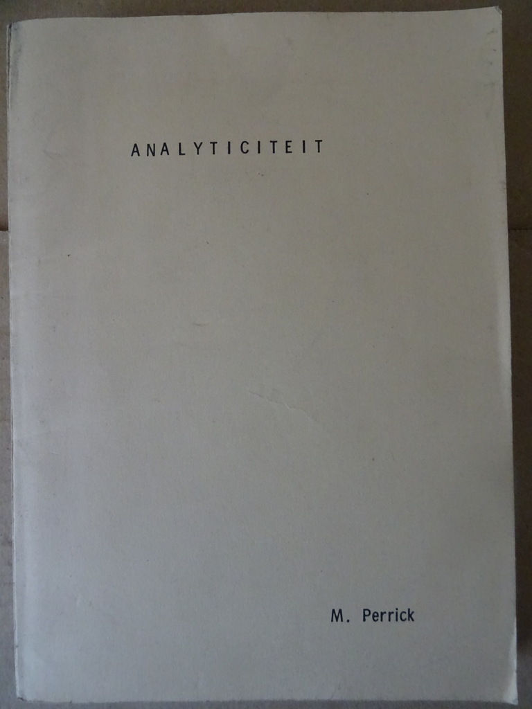M. Perrick Analyticiteit, Proefschrift door Michaël Perrick, eerste druk uit 1979. In een prachtige gebruikte staat, zie foto’s. Van binnen nog mooi, lijkt ongelezen. 251 pagina’s.