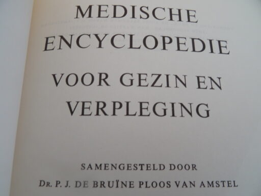 Medische encyclopedie voor gezin & verpleging samengesteld door Dr. P. J. de Bruïne Ploos van Amstel, zestiende druk uit 1972. In een schitterende gebruikte staat, zie foto’s. Van binnen nog mooi, lijkt ongelezen. 392 pagina’s.