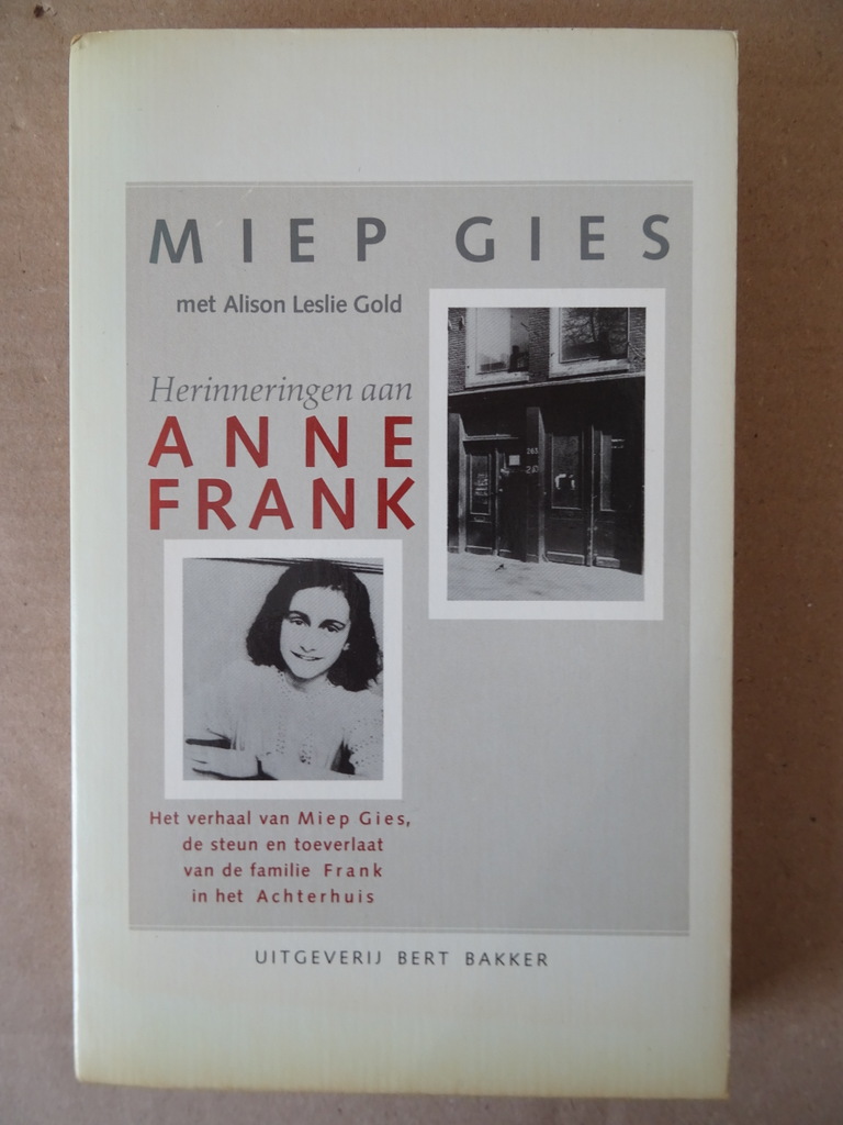 Miep Gies en Alison Leslie Gold Herinneringen aan Anne Frank, Het verhaal van Miep Gies, de steun en toeverlaat van de familie Frank in het Achterhuis, negende Nederlandse druk uit 1988. In schitterende gebruikte staat, zie foto’s. Van binnen nog mooi, lijkt ongelezen. 242 pagina’s.