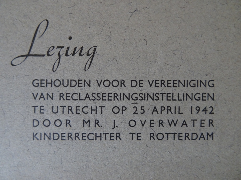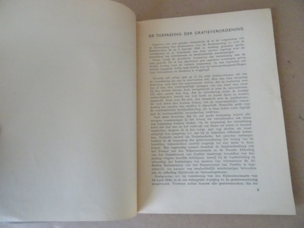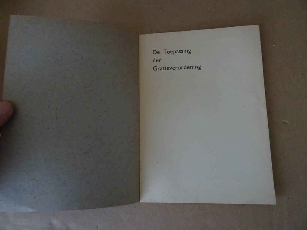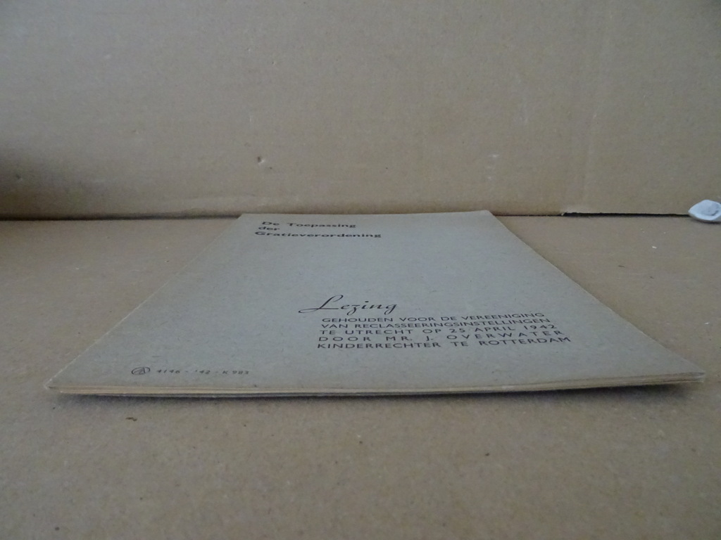 Mr. J. Overwater De Toepassing der Gratieverordening, Leezing gehouden voor de vereeniging van reclasseeringsinstellingen te Utrecht op 25 april 1942 door Mr. J. Overwater kinderrechter te Rotterdam, eerste druk uit 1942. In een prachtige gebruikte staat, zie foto’s. Gelezen, van binnen nog redelijk net. 16 pagina’s. Zeer zeldzaam.