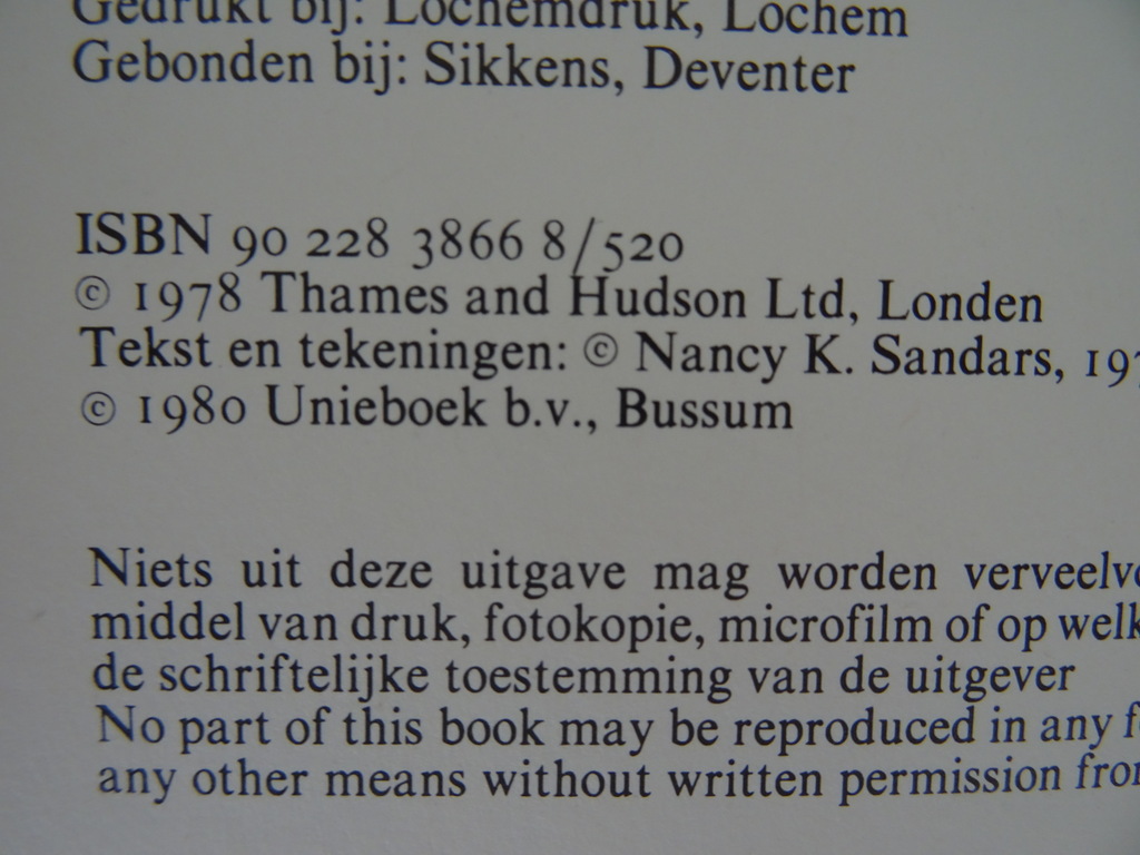 N.K. Sandars De zeevolken Egypte en Voor-Azië bedreigd 1250-1150 v.C., eerste druk uit 1980. Het boek heeft 213 pagina’s en is als nieuw. Verrijkt met adembenemende foto’s.
