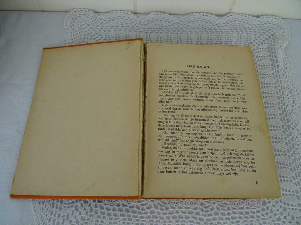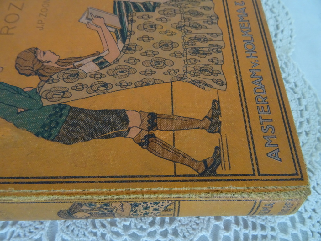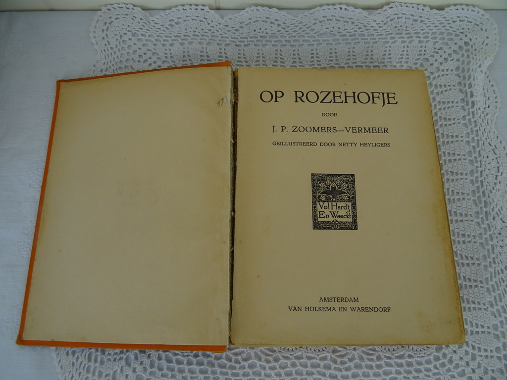 Op Rozehofje door J.P. Zoomers-Vermeer, eerste druk uit 1931. Het prachtige antieke jeugdboek is in redelijke staat, zie foto’s. De kaft is wat los van binnen en het eerste blad is los. Het blijft echter een prachtig voorleesboek of leesboek voor kinderen. Het boek heeft 272 bladzijdes en is verrijkt met fraaie illustraties van Netty Heyligers.