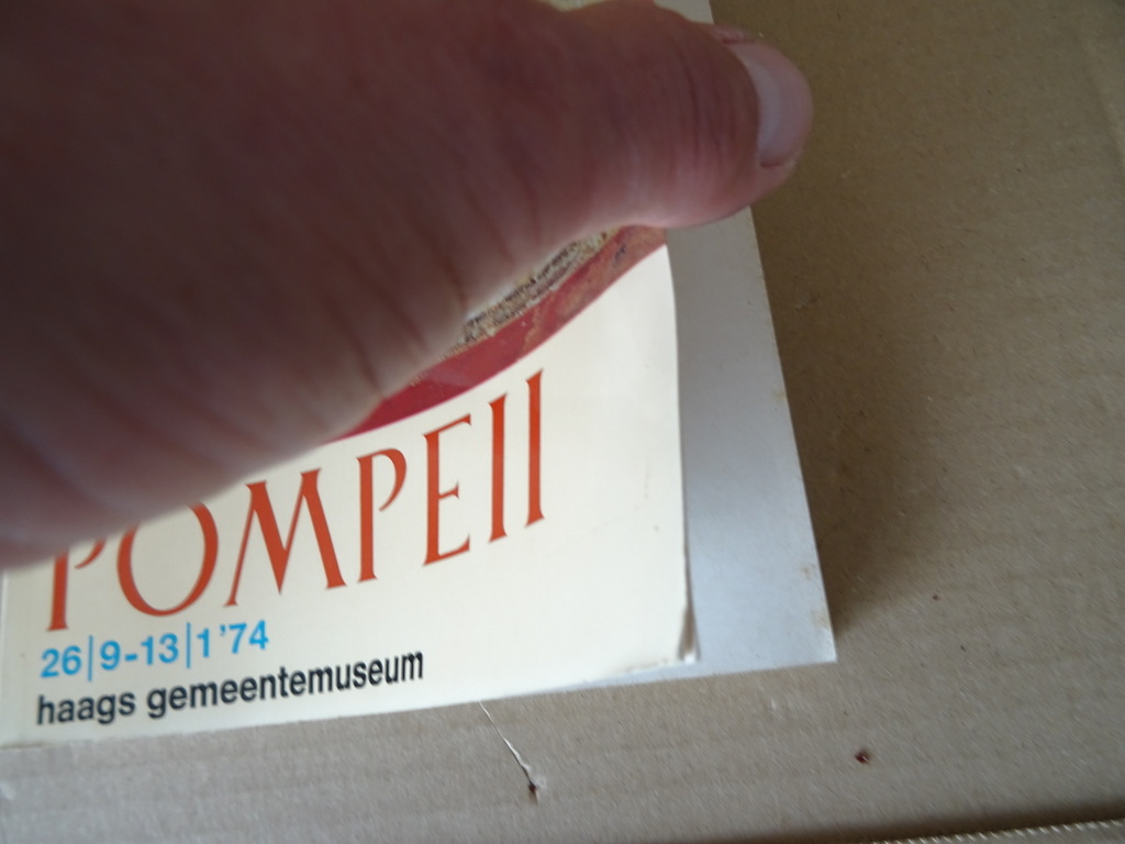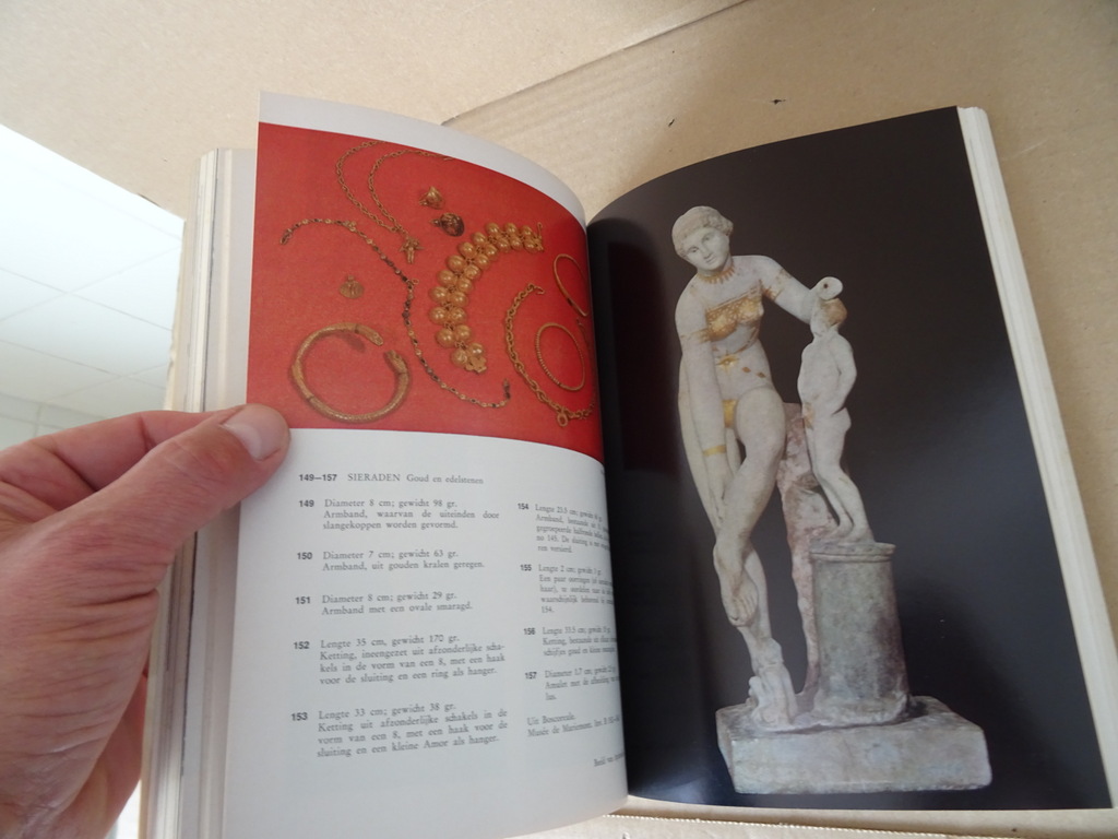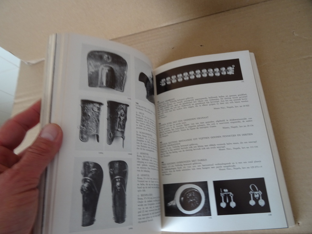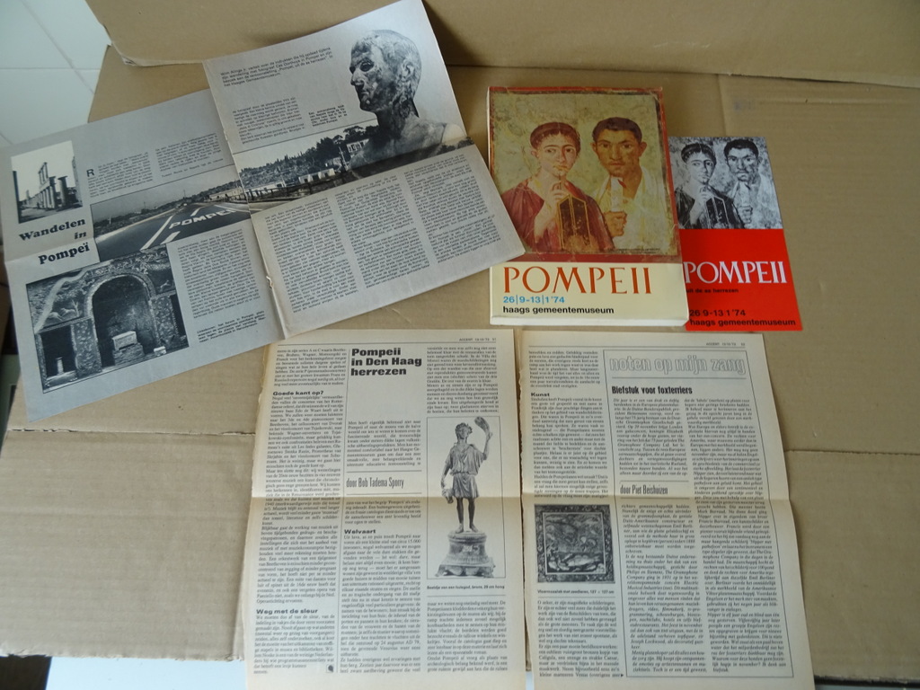 Pompeii Haags Gemeentemuseum oftwel Pompeii, 26 september 1973 tot 13 januari 1974, Haags Gemeentemuseum, eerste druk uit 1973. In een prachtige gebruikte staat, zie foto’s. Van binnen nog mooi, lijkt ongelezen. 207 pagina’s. Met schitterende afbeeldingen in zwart wit en kleur. In het boek vond ik ook nog twee krantenartikelen en een reclameblaadje van de tentoonstelling, zie foto’s.