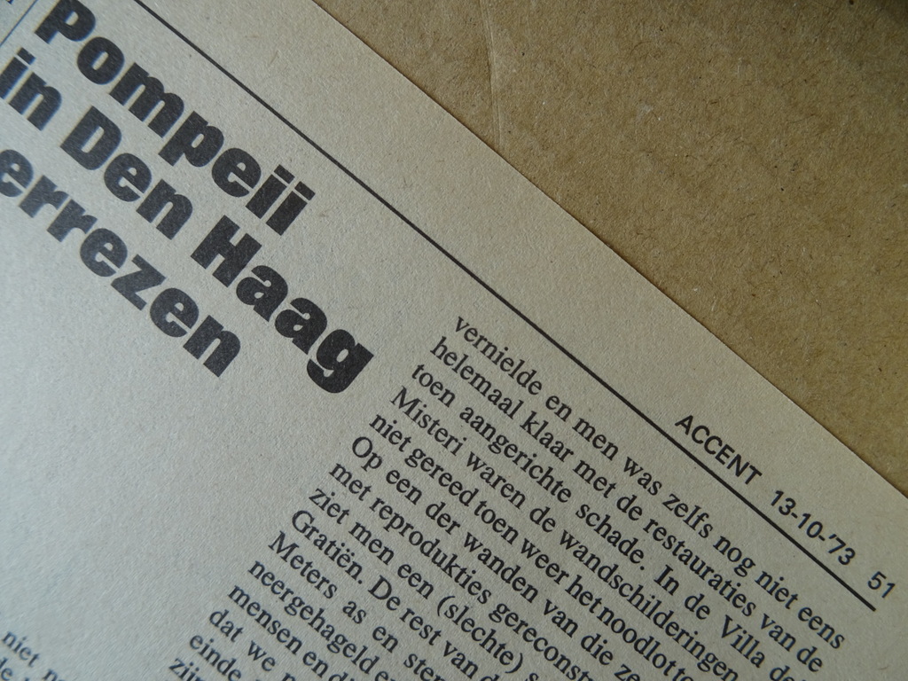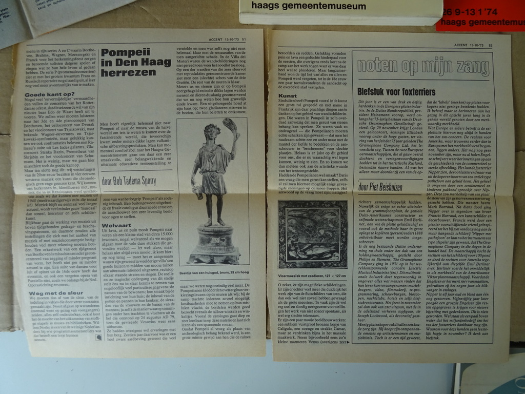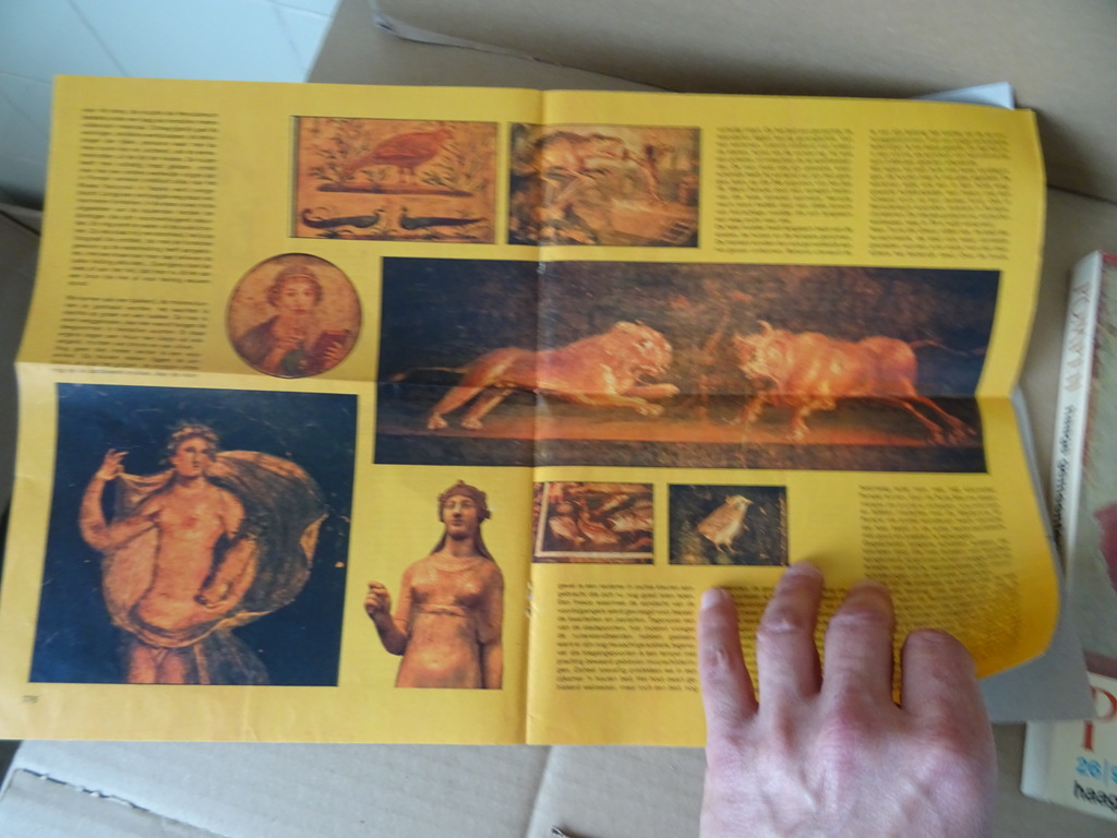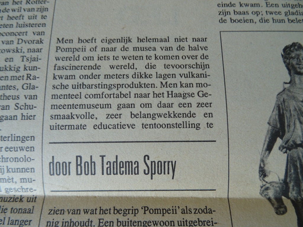 Pompeii Haags Gemeentemuseum oftwel Pompeii, 26 september 1973 tot 13 januari 1974, Haags Gemeentemuseum, eerste druk uit 1973. In een prachtige gebruikte staat, zie foto’s. Van binnen nog mooi, lijkt ongelezen. 207 pagina’s. Met schitterende afbeeldingen in zwart wit en kleur. In het boek vond ik ook nog twee krantenartikelen en een reclameblaadje van de tentoonstelling, zie foto’s.