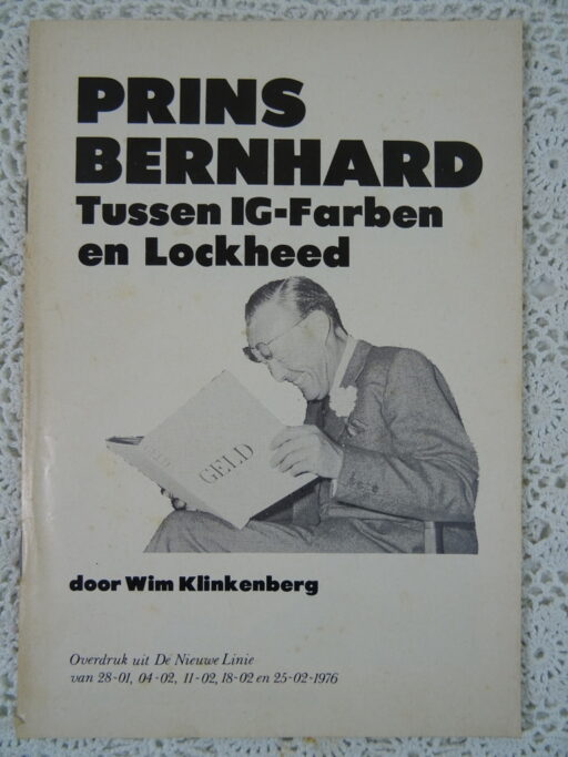 Prins Bernhard Tussen IG-Farben en Lockheed door Wim Klinkenberg een interessant en zeldzaam boekje met vaderlandse historie. Het boekje is uit 1976 en het telt 40 bladzijdes. Het is in goede staat, als nieuw, afgezien van een minuscuul scheurtje op de kaft, zie foto`s.