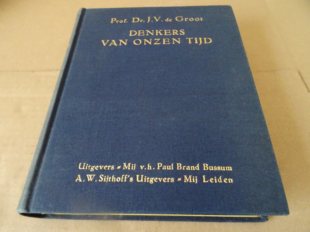 Prof. Dr. J. V. de Groot Denkers van onzen tijd, tweede, geheel herziene druk uit 1918. In een schitterende gebruikte staat, zie foto’s. Van binnen nog mooi, lijkt ongelezen. 306 pagina’s. Zeldzaam.