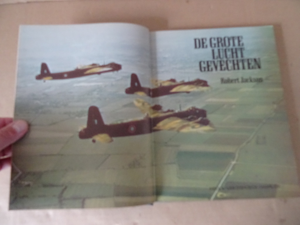 Robert Jackson De grote luchtgevechten, eerste Nederlandse druk uit 1977. In een prachtige gebruikte staat, van binnen nog vrij mooi, lijkt ongelezen. 157 Pagina’s.