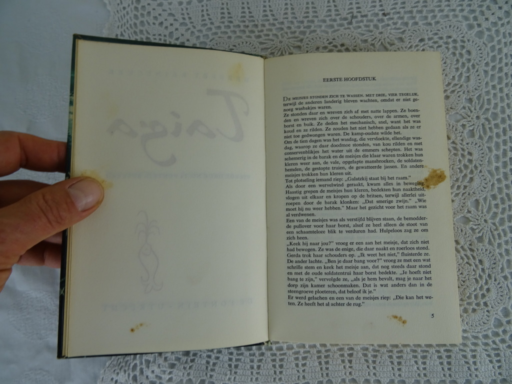Taiga door Herbert Reinecker uit de jaren zestig van de vorige eeuw. De Duitse krijgsgevangenen in een Russisch kamp krijgen weer moed door de komst van een vrouwelijke arts. Het boek is in goede gebruikte staat. Van binnen nog goed afgezien van de vlekken op de eerste pagina’s. Spannend boek!