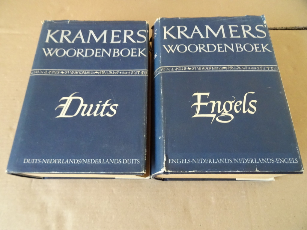 Vintage Kramers woordenboek Duits en Engels 9 euro per stuk, eenentwintigste druk uit 1956 (Duits-Nederlands / Nederlands-Duits) en vijfentwintigste druk uit 1957 (Engels-Nederlands / Nederlands-Engels). In uitzonderlijk mooie gebruikte staat met uitzondering van de losse omslagbladen, zie foto’s. Van binnen nog mooi, lijken ongelezen. 1316 en 1408 pagina’s. U kunt aan het eind van uw bestelling vermelden welk boek u graag ontvangt of komt afhalen.