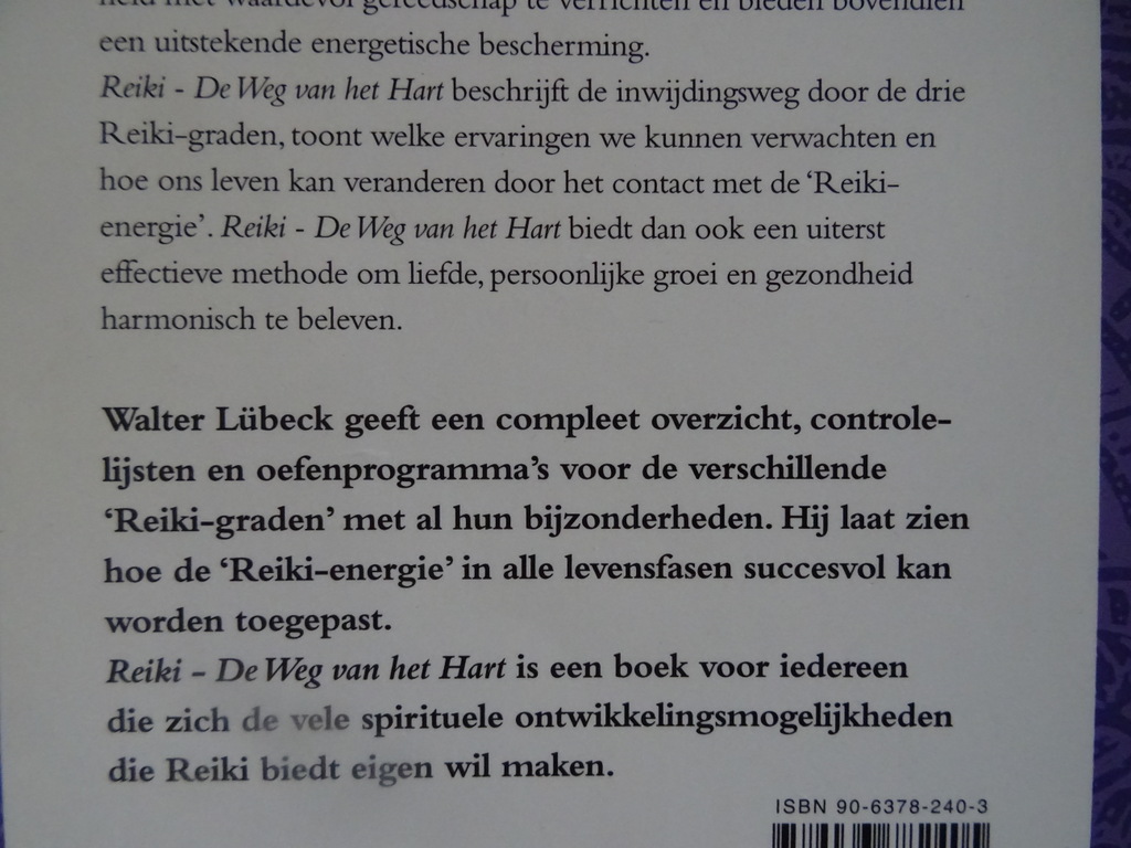 Walter Lübeck Reiki De weg van het hart, De kortste methode om liefde, persoonlijke groei en gezondheid harmonisch te beleven, Inwijding in de drie Reiki-graden, vierde Nederlandse druk uit 1992. In een prachtige gebruikte staat, zie foto’s. Van binnen nog mooi, lijkt ongelezen. 197 pagina’s.