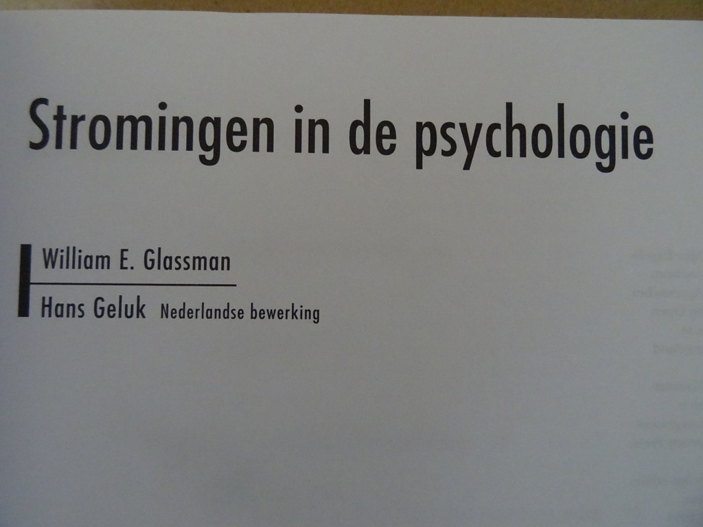 William E. Glassman Stromingen in de Psychologie, eerste Nederlandse druk, vijfde oplage uit 2003. In goede gebruikte staat, gelezen. Lichte slijtage aan de hoekjes van kaft, van binnen een minuscuul vouwtje en wat lichte leessporen op de hoekjes van de pagina’s, zie foto’s. Afgezien daarvan van binnen nog redelijk mooi. 354 pagina’s.