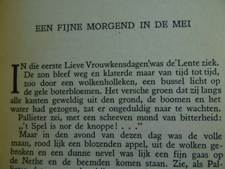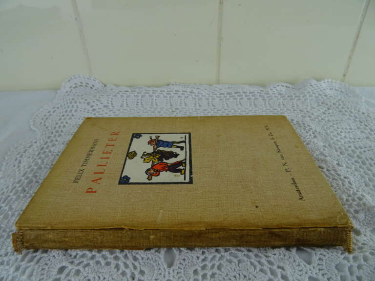 Pallieter Felix Timmermans uit circa 1916. Het boekje is een streekroman van de Vlaamse schrijver en dichter Felix Timmermans gepubliceerd in 1916. De roman is vernoemd naar zijn hoofdpersonage Pallieter, een levensgenieter die leeft onder het motto ‘pluk de dag’. Het boek vertelt het verhaal van de levenslustige Pallieter die met zijn huishoudster Charlot in het idyllische Lier woont. Dag in dag uit begeeft hij zich in de Netevallei waar hij zorgeloos geniet van het paradijselijke landschap (bron; Wikipedia). Het schitterende boek heeft 208 bladzijdes. Het is nog vrij goede gebruikte staat, zie foto’s.