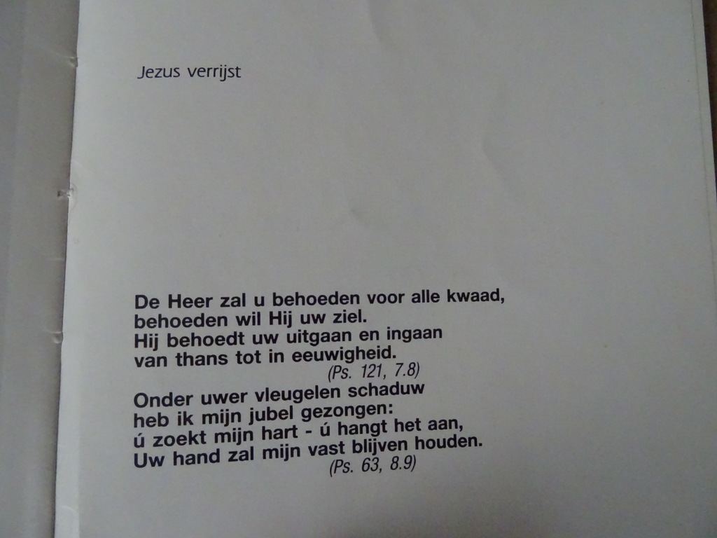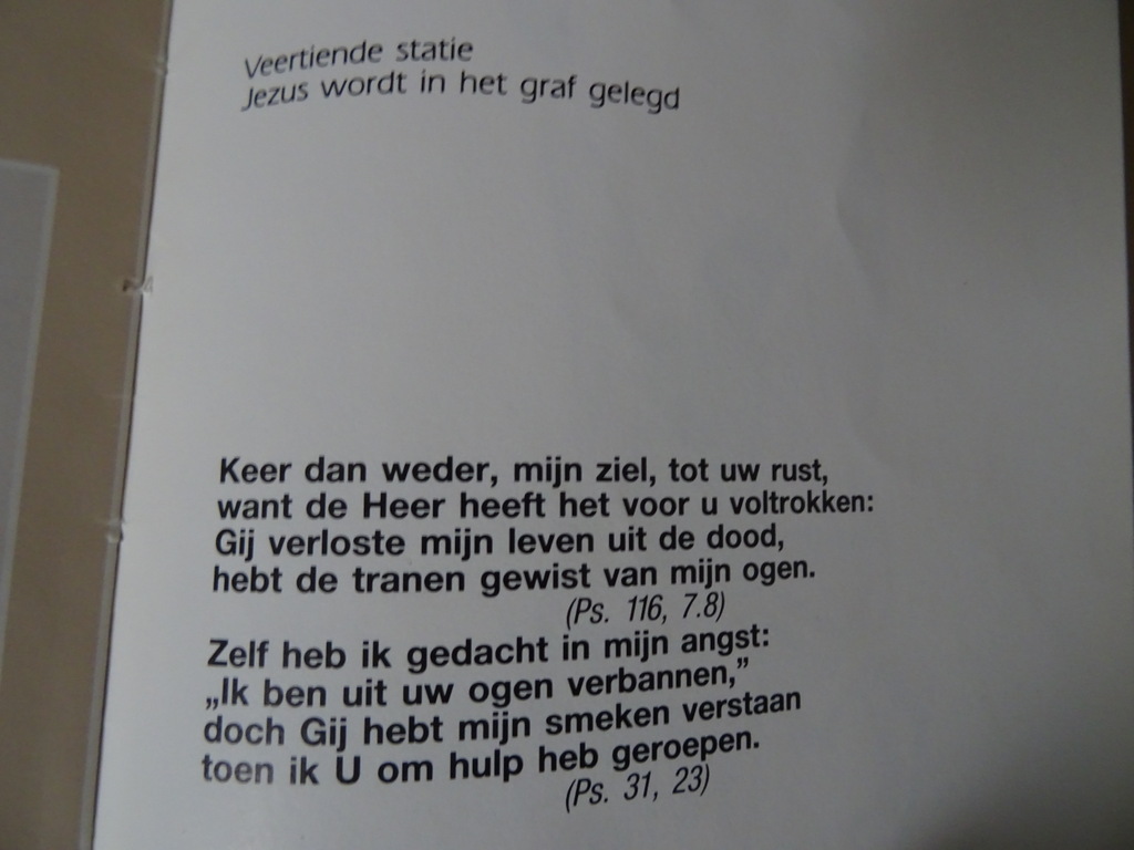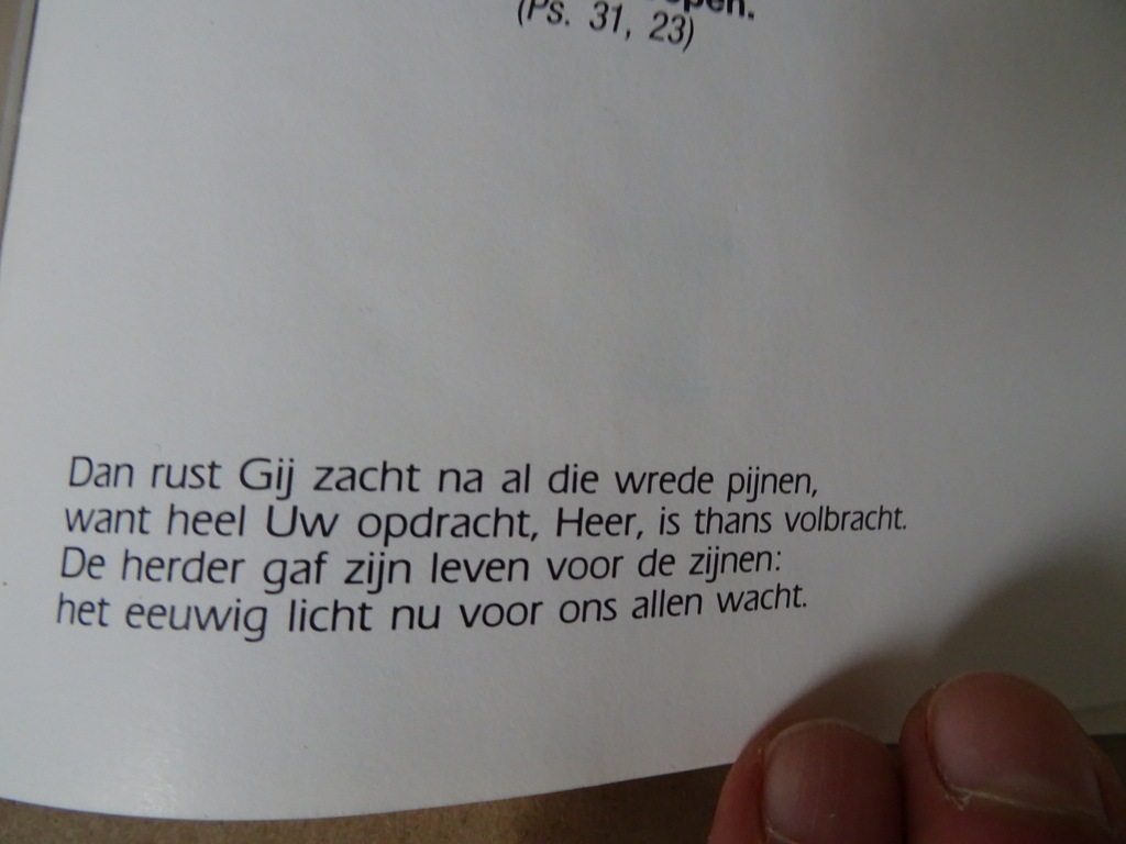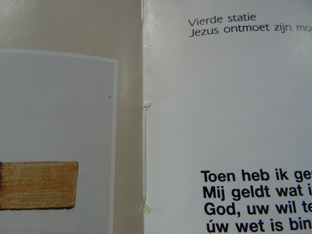 Adeleyd Ook nu nog gaat Uw Kruisweg verder, eerste druk uit 1989. Gebonden boekje in goede gebruikte staat, vouwtje in bovenste helft, zie foto’s. Gelezen, van binnen nog redelijk net, er zijn wat leessporen. 48 ongenummerde pagina’s. Bevat schitterende prenten met hierop afgebeeld de Kruiswegstaties van keramiek van Hildegarde. Deze kruisweg hangt in de kerk te Beek. Afkomstig uit de collectie van een pastoor op leeftijd. Adeleyd is mogelijk een pseudoniem voor Zuster Rosa Olaerts.