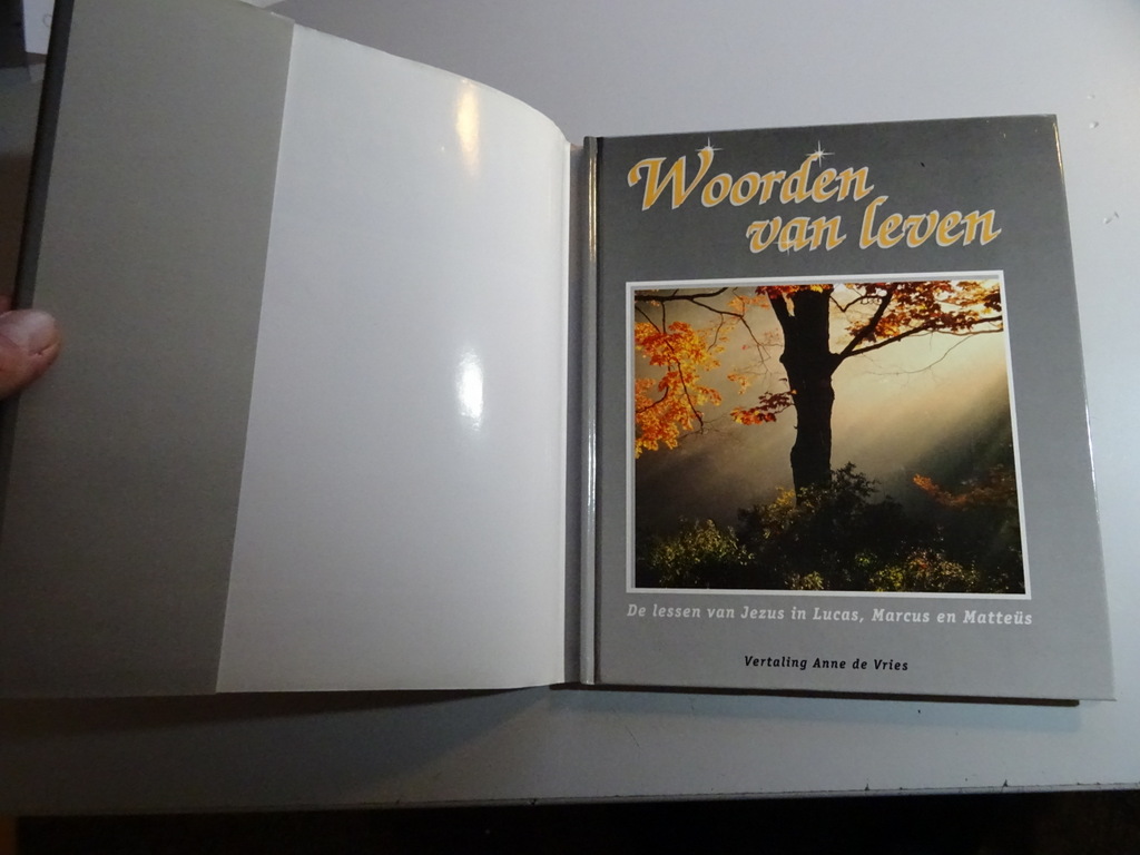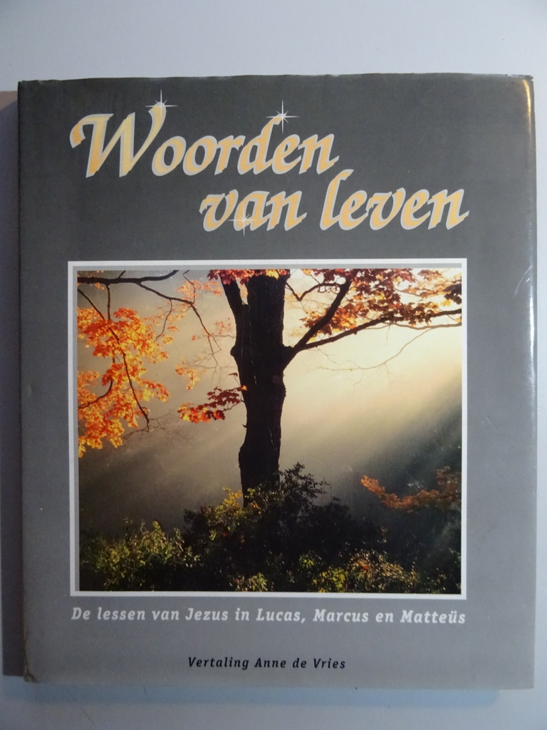Anne de Vries Woorden van leven, De lessen van Jezus in Lucas, Marcus en Matteüs, eerste Nederlandse druk uit 1993. Afkomstig uit de collectie van een pastoor op leeftijd. In een prachtige gebruikte staat, lijkt ongelezen. 64 Pagina’s. Een boek om van te genieten met prachtige kleurenfoto’s. De woorden van jezus, opgetekend in de bijbel, zijn bestemd voor mensen van alle tijden. Mede dankzij de honderden vertalingen uit de grondtekst hebben deze woorden de eeuwen door ontelbaar velen bereikt. In dit boek zijn woorden van Jezus opgenomen in de vertaling van Anne de Vries: “Het Nieuwe Testament in de taal van onze tijd“.